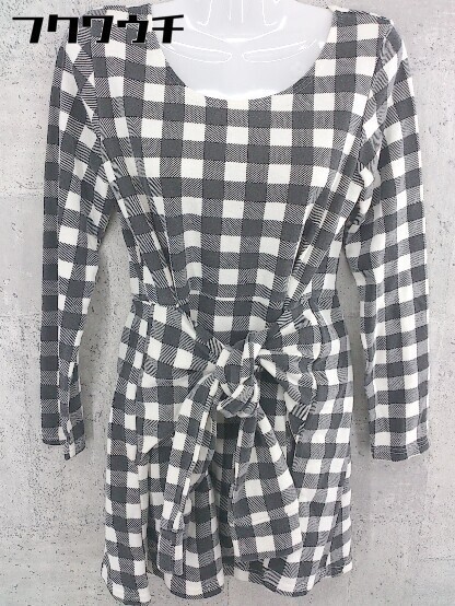 ◇ continuer de NICE CLAUP ナイスクラップ 長袖 ミニ ワンピース ホワイト ダークグレー レディース