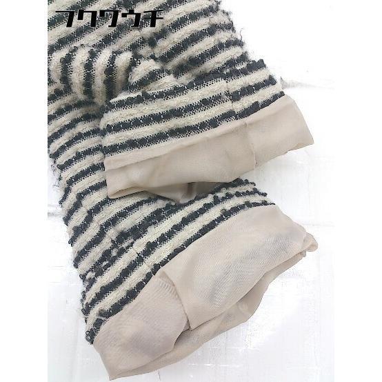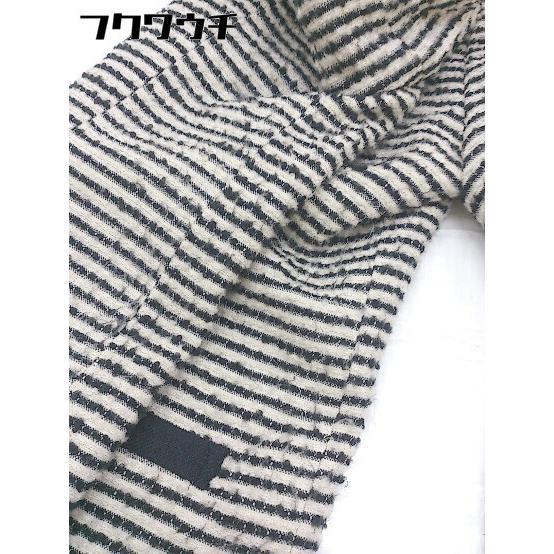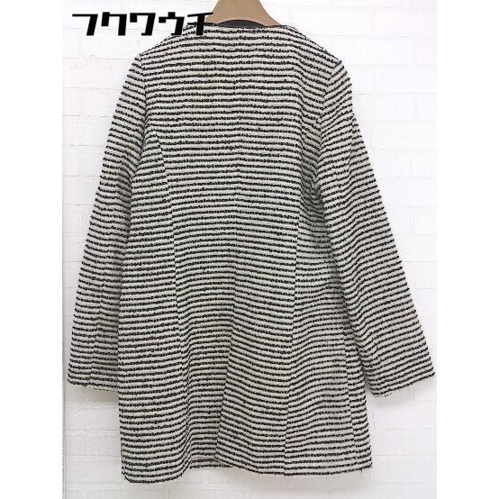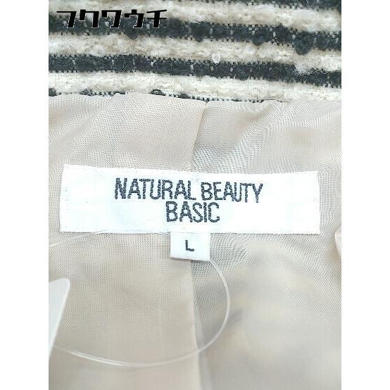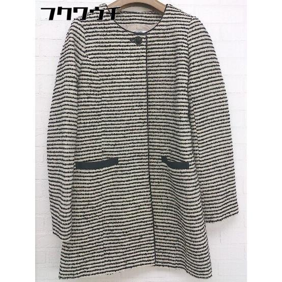 ◇ NATURAL BEAUTY BASIC ボーダー ノーカラー 長袖 コート サイズL ベージュ系 ブラック レディース