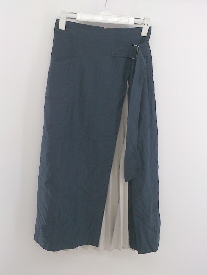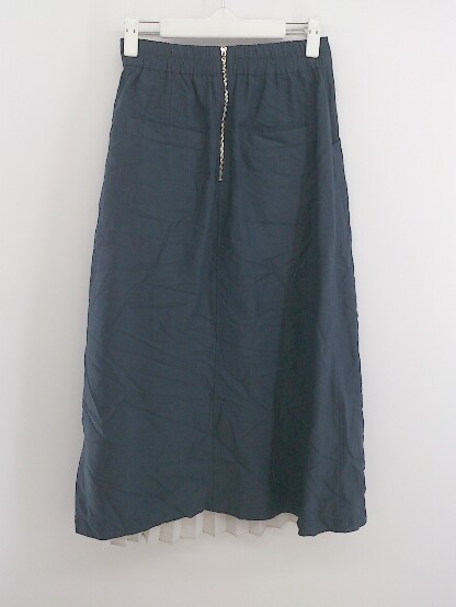 ◇ AuieF アウィーエフ ウエストゴム ロング プリーツ スカート サイズ36 ネイビー ベージュ レディース P