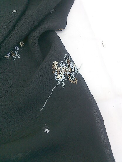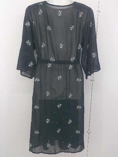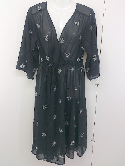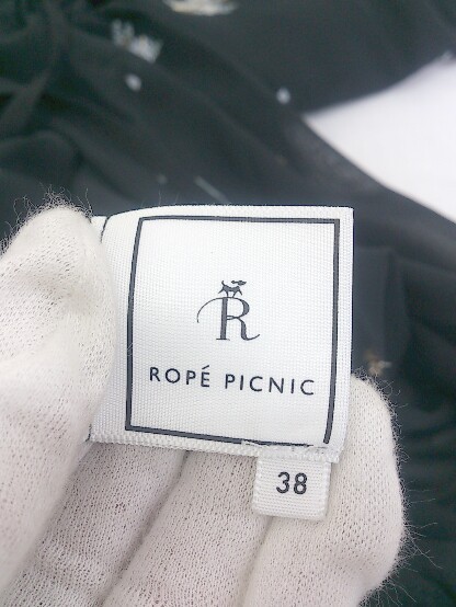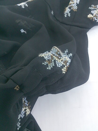 ◇ ◎ ROPE PICNIC ロペピクニック 刺繍 透かし 七分袖 膝下丈 ワンピース サイズ38 ブラック マルチ レディース