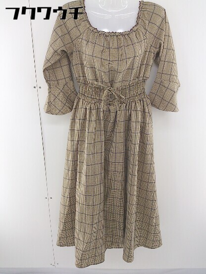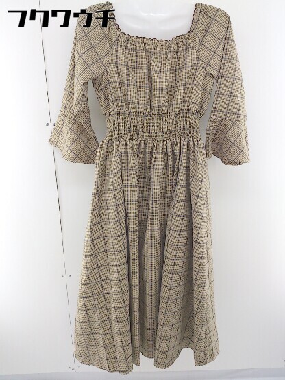 ◇ one after another NICE CLAUP チェック オフショル 長袖 ロング ワンピース サイズF ベージュ系 レディース