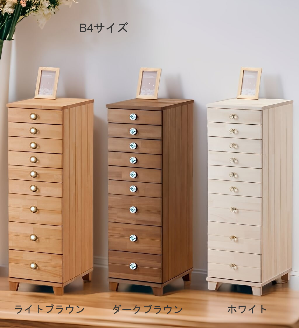 ◆B4サイズ・クリスタル調取っ手のチェスト9段・色選択可◆ |