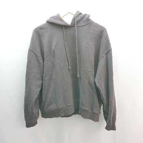 ◇ WYM フード付き 無地 コットン100% 大人カジュアル 長袖 パーカー サイズS ダークグレー レディース E