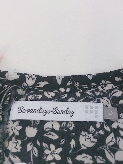 ◇ SEVENDAYS=SUNDAY セブンデイズ サンデイ 花柄 半袖 ミニ ワンピース サイズL ブラック ホワイト系 レディース P