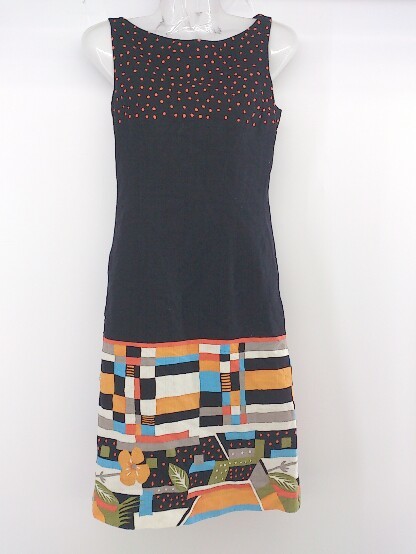 ◇ Rouge vif ルージュ ヴィフ 総柄 ノースリーブ 膝丈 ワンピース ブラック レディース P