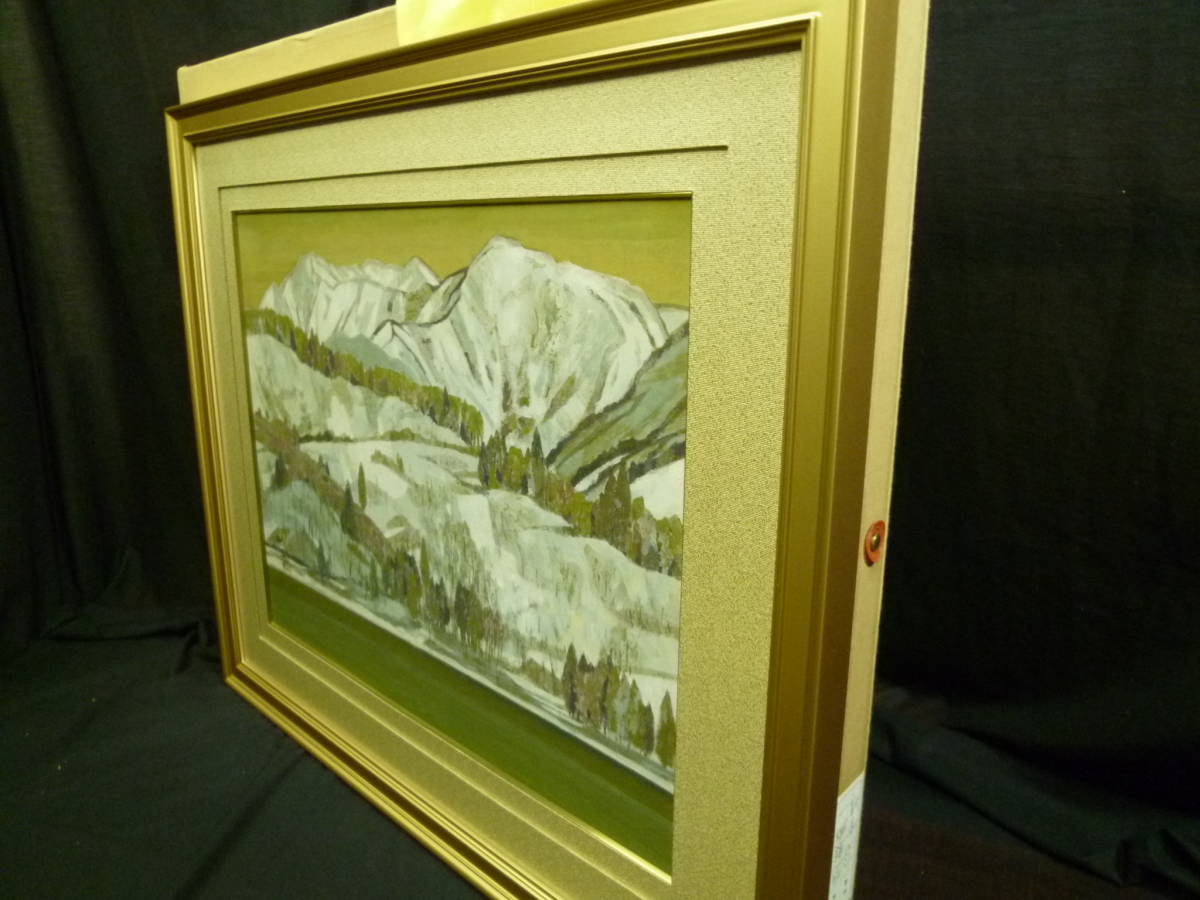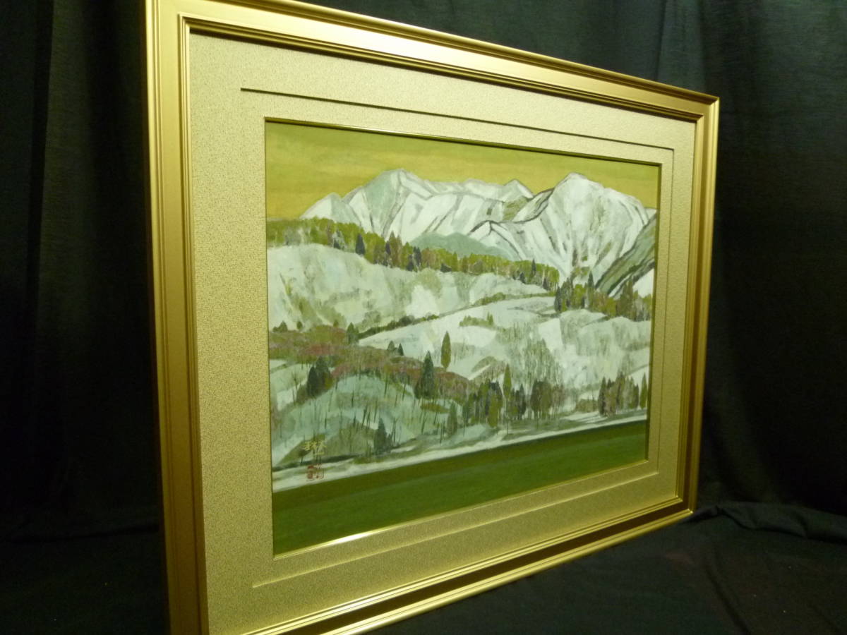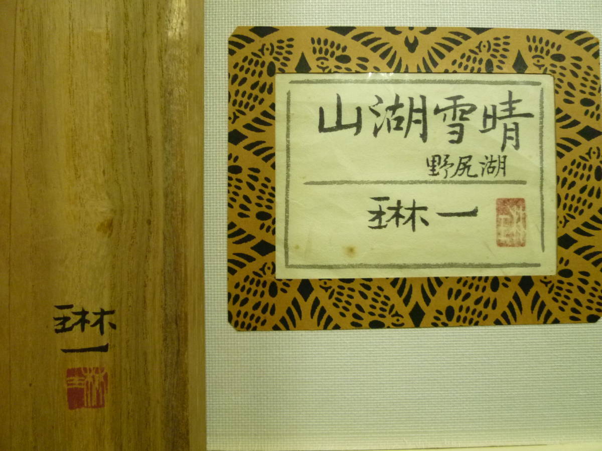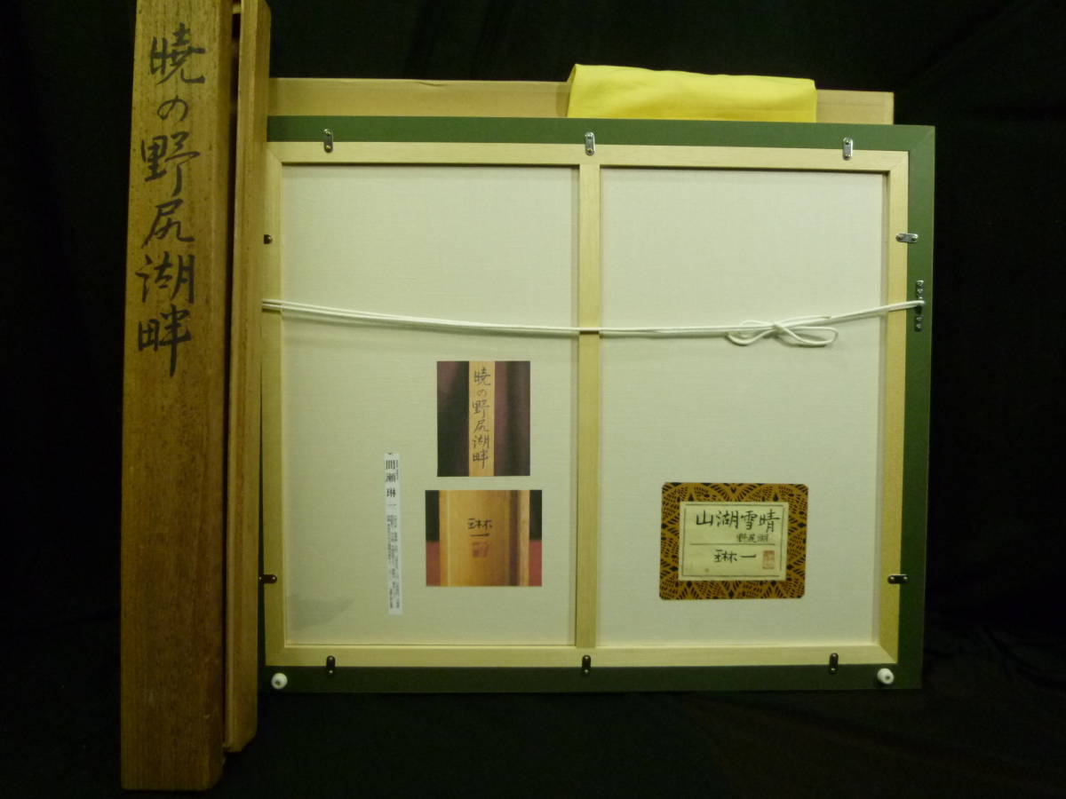 真作 間瀬琳一『山湖雪晴』共シール(暁の野尻湖畔)共板付 日本画 絹本10号額 師・西山翠嶂・嶋谷自然 日展、日春展入賞奨励賞