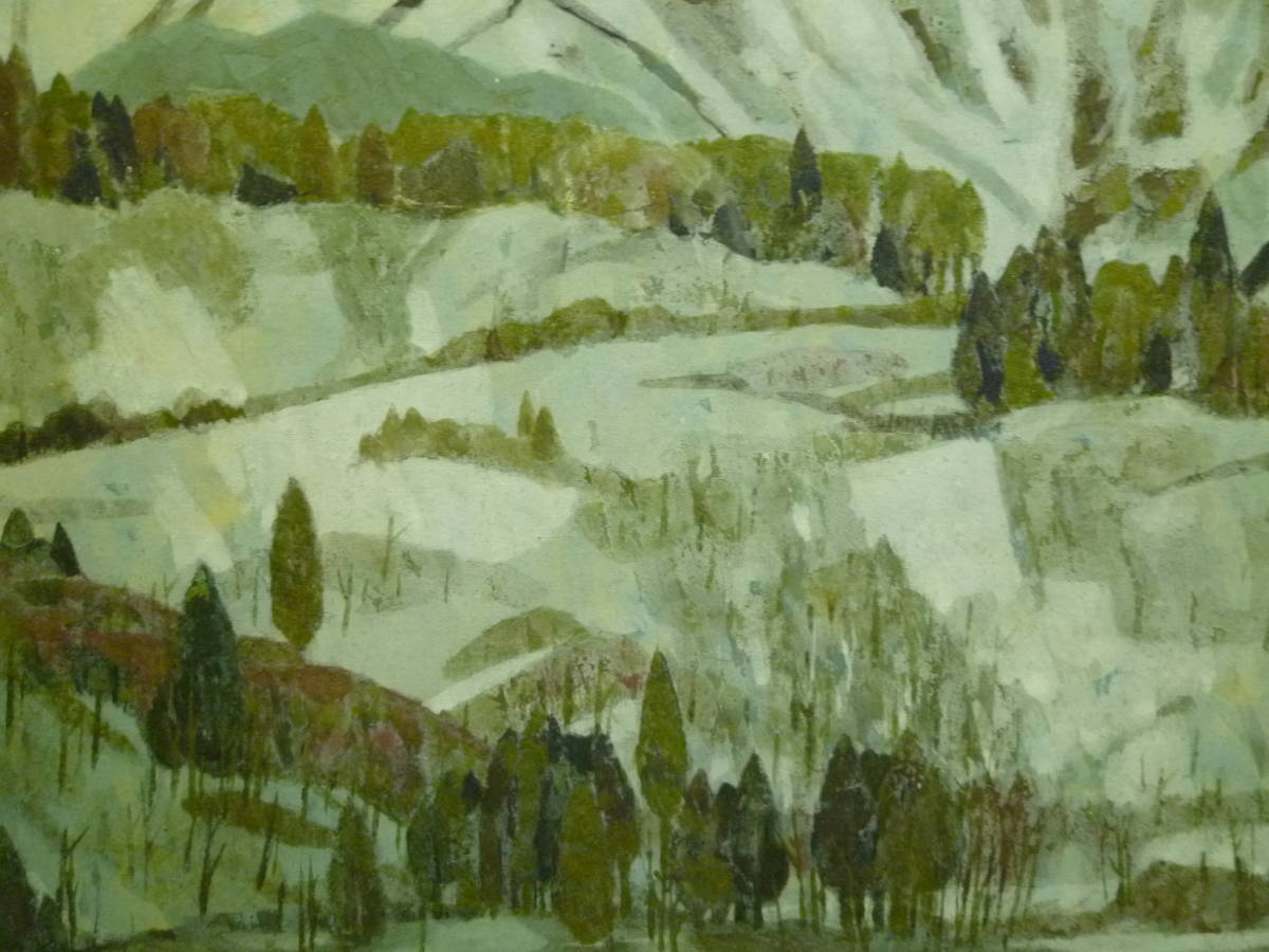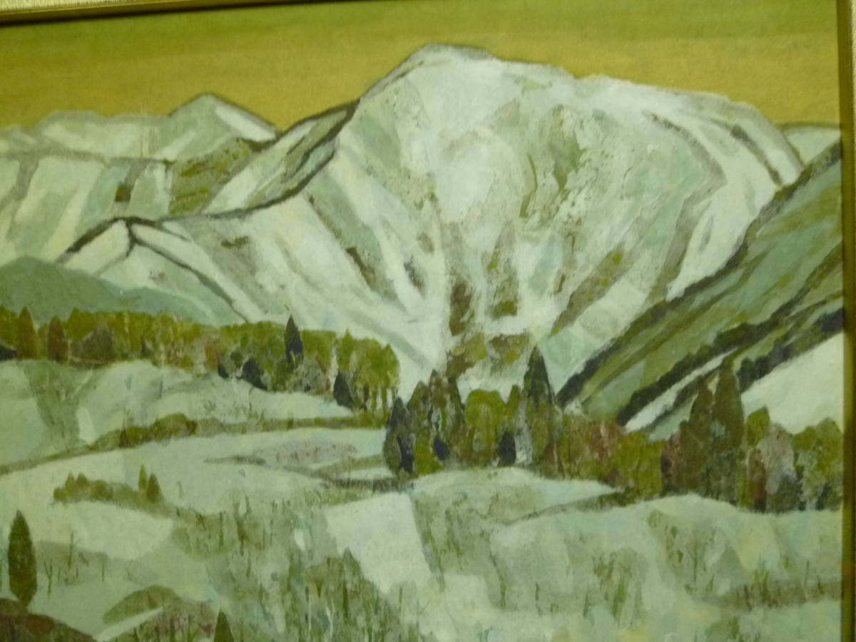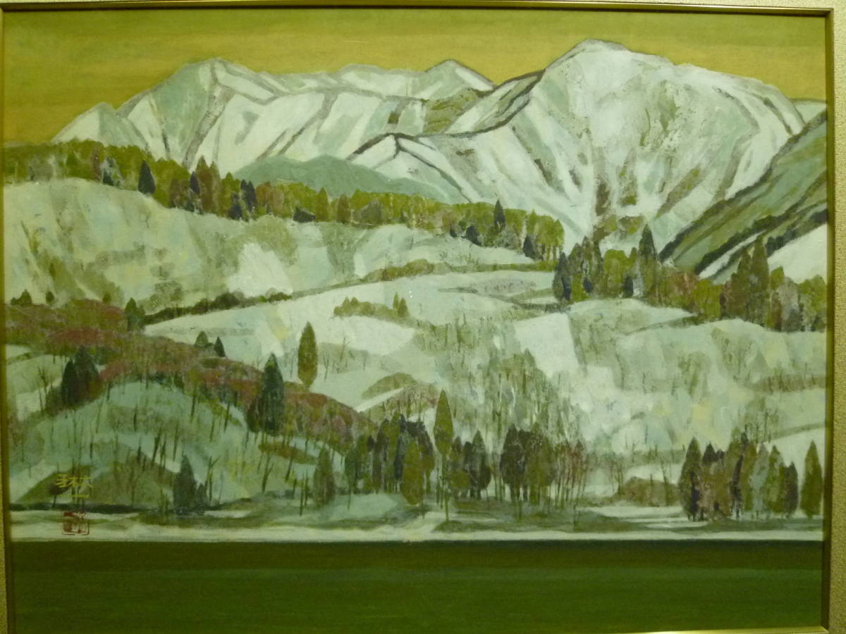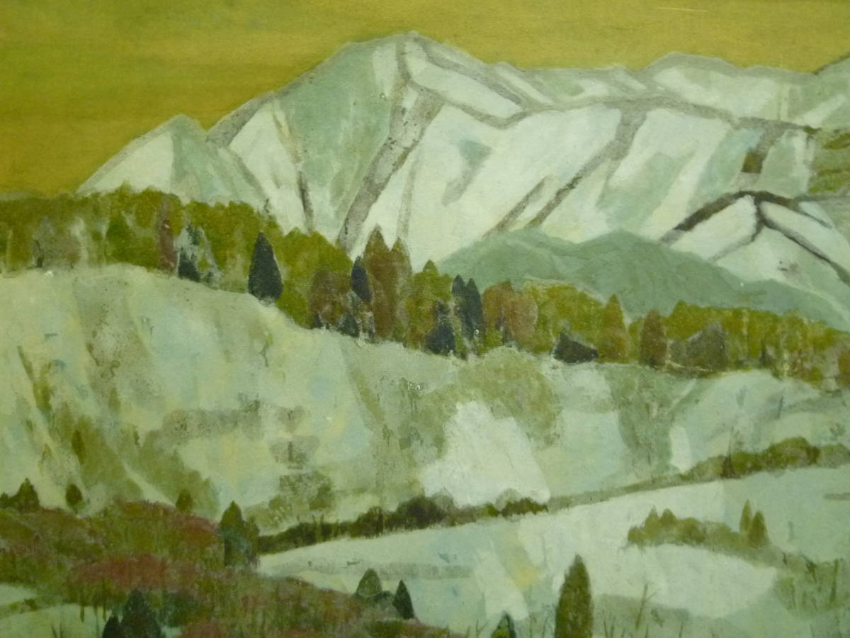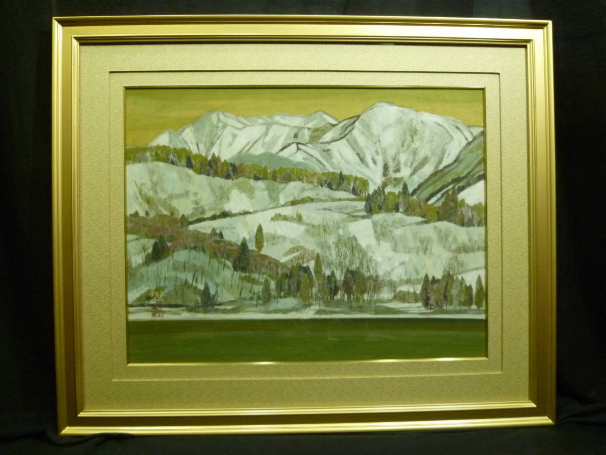 真作 間瀬琳一『山湖雪晴』共シール(暁の野尻湖畔)共板付 日本画 絹本10号額 師・西山翠嶂・嶋谷自然 日展、日春展入賞奨励賞