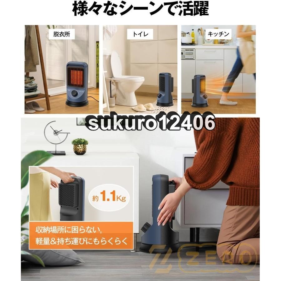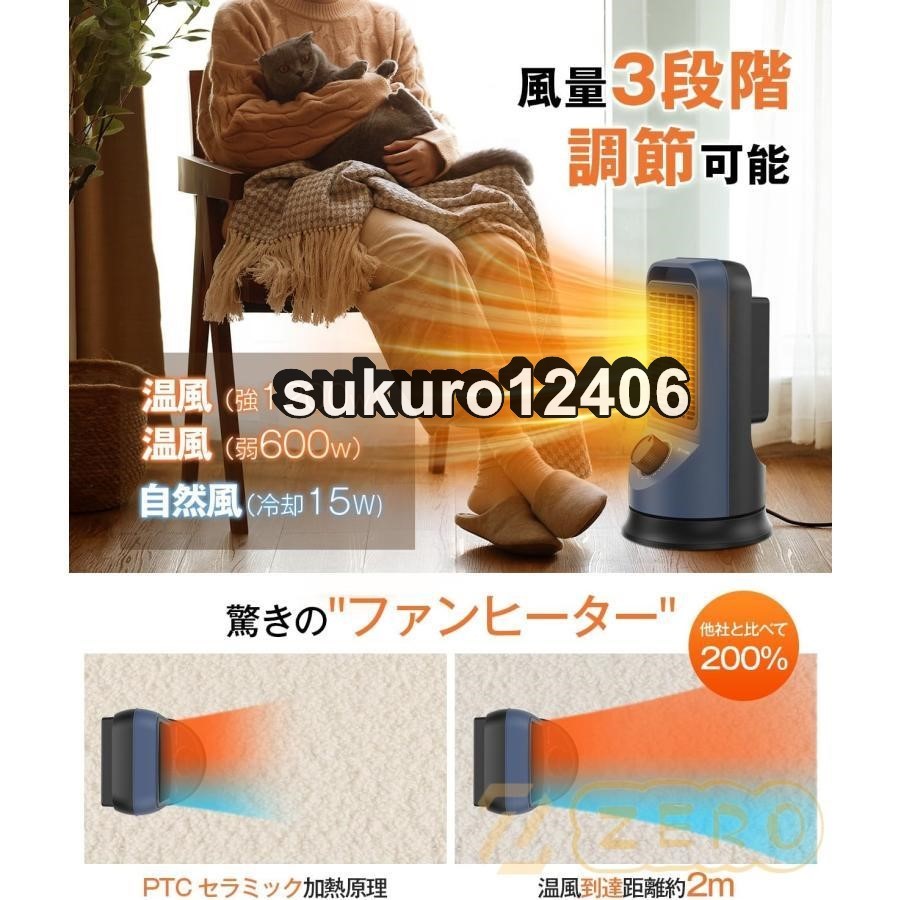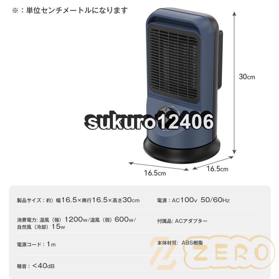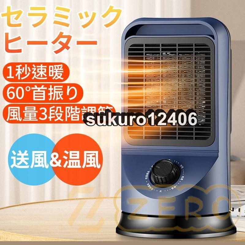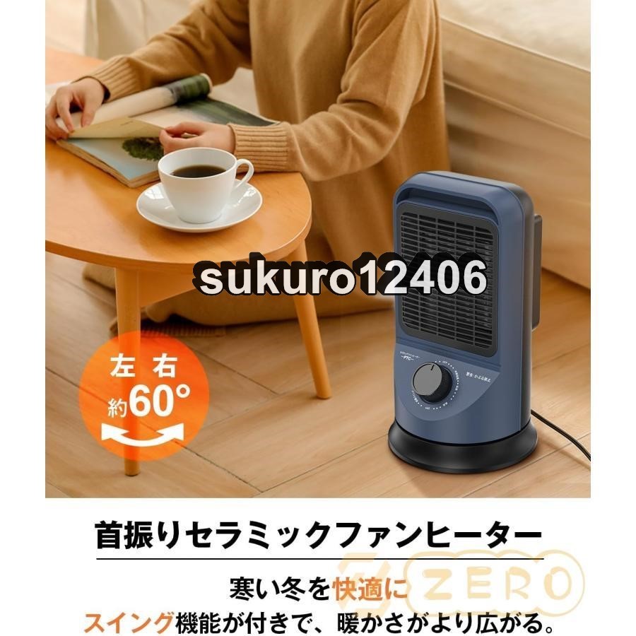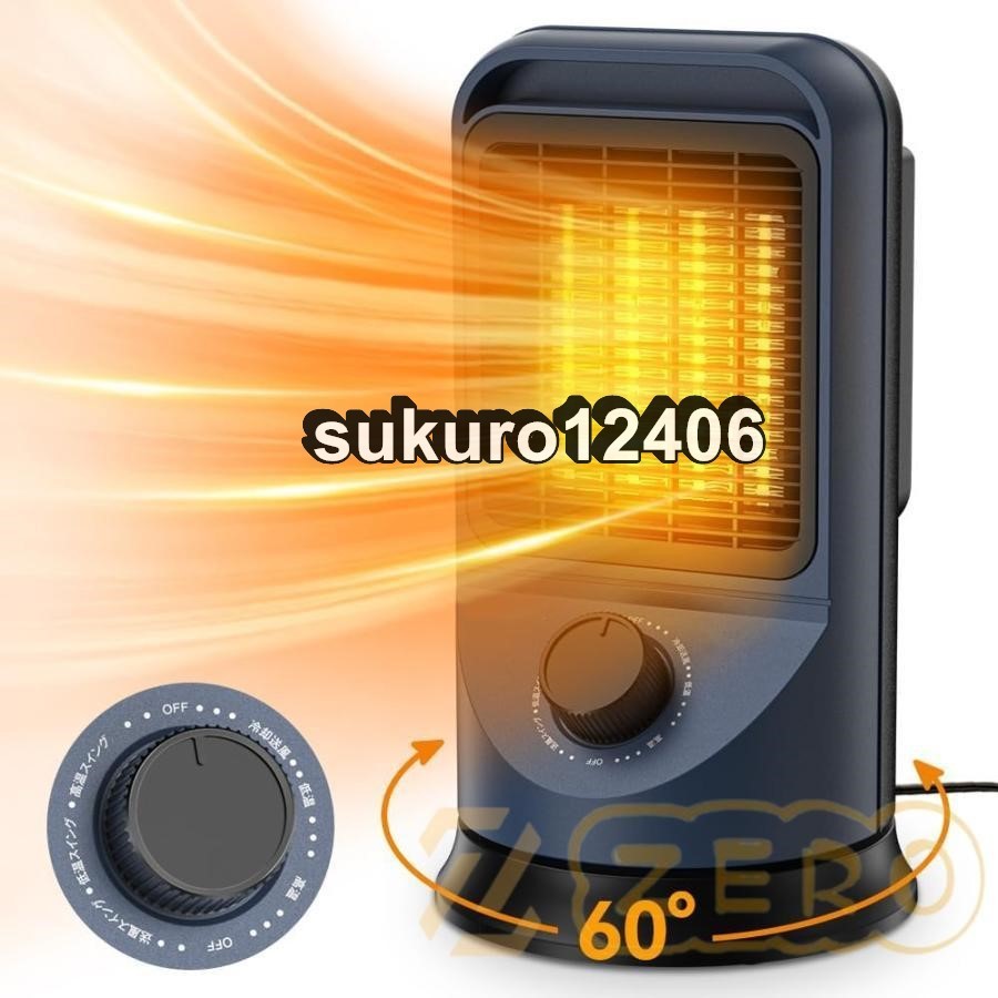 セラミックヒーター 小型 セラミックファンヒーター 1200w 3段階温度調節 大風量 60°首振り卓上 転倒OFF 過熱防止 暖房器具 省エネ