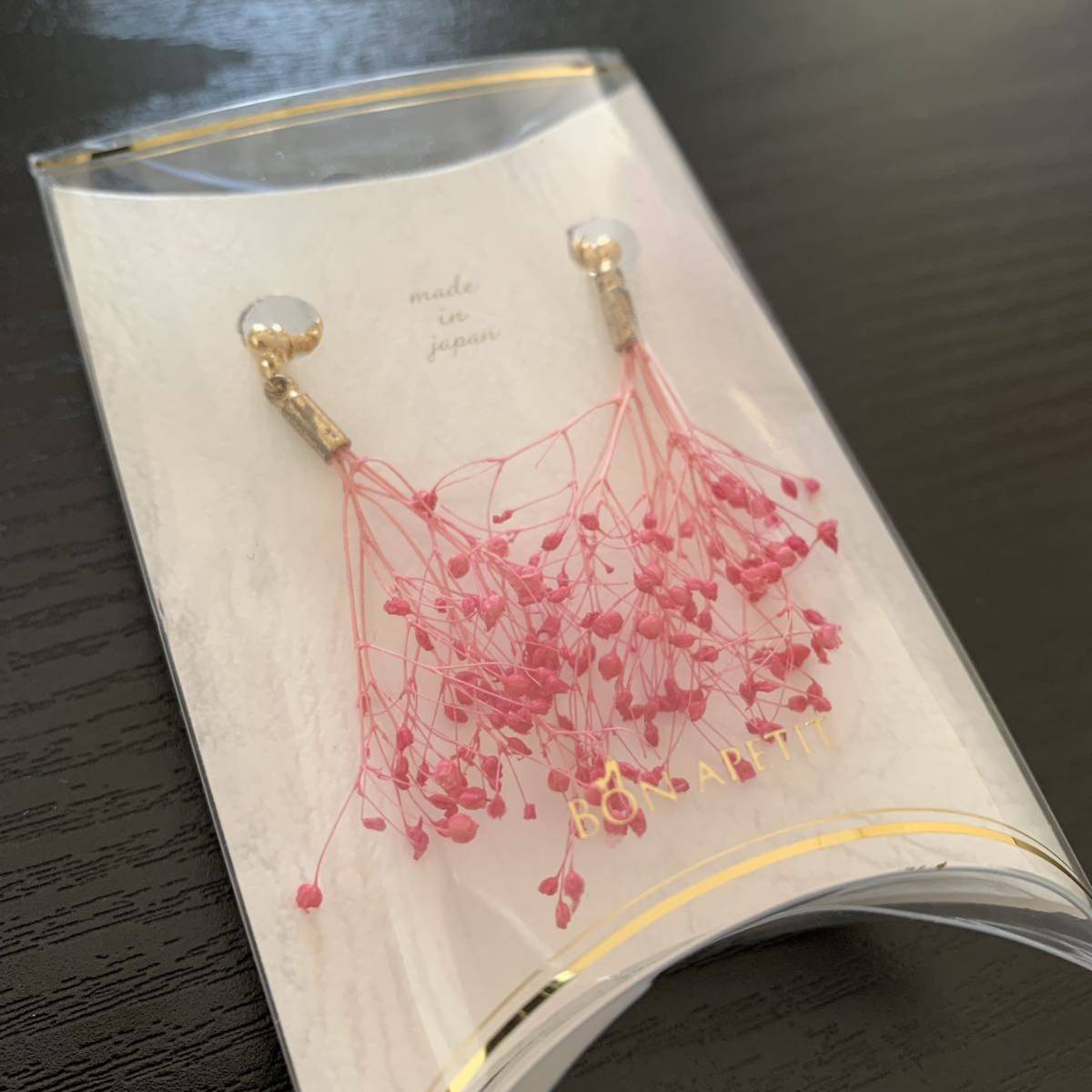 レディース アクセ アクセサリー ピアス ジュエリー イヤリング 大人 おしゃれ お花 花 フラワー ゴールド ドライフラワー 花束 春 スプリング 霞草 かすみそう カスミソウ ピンク くすみピンク