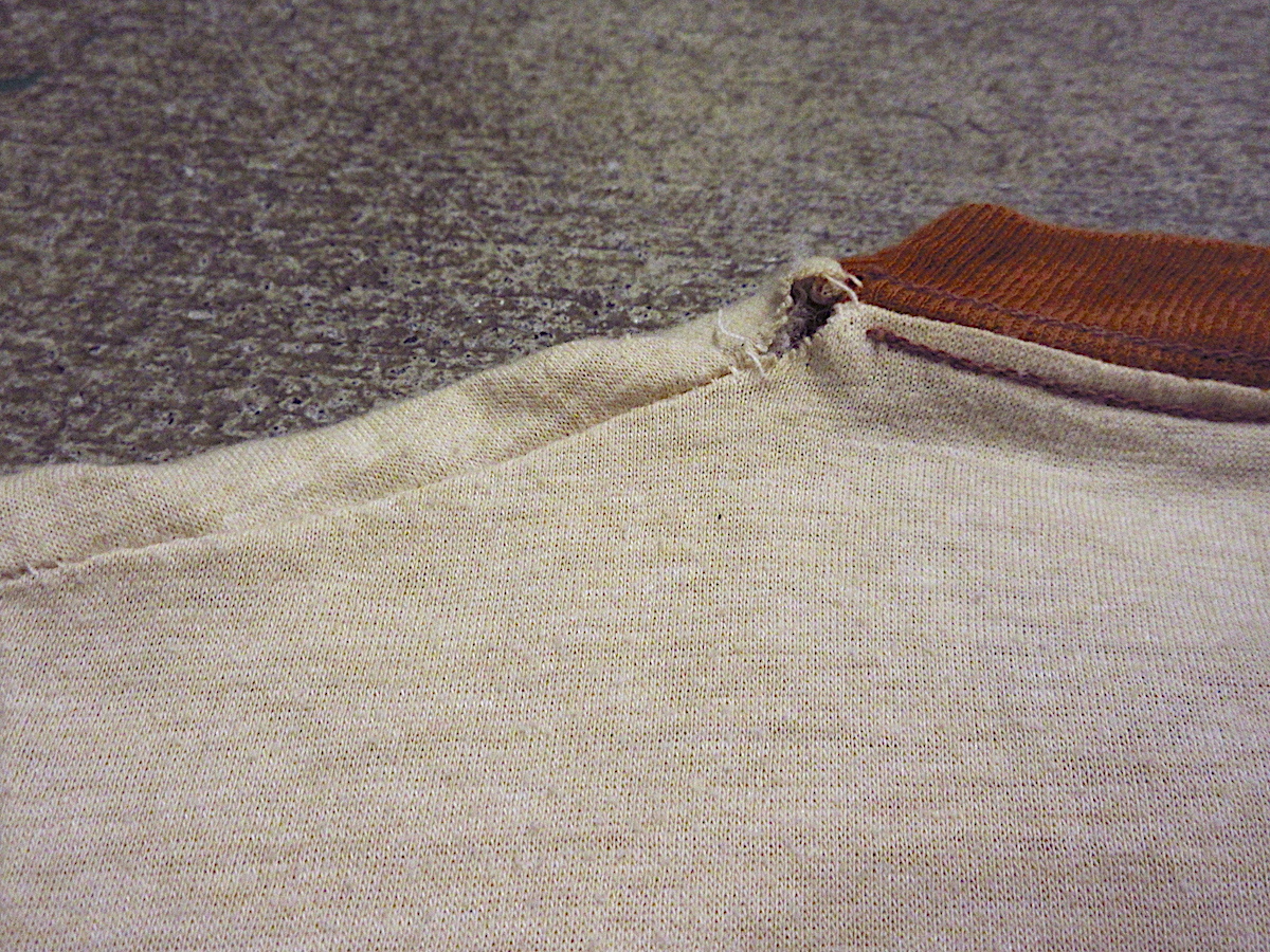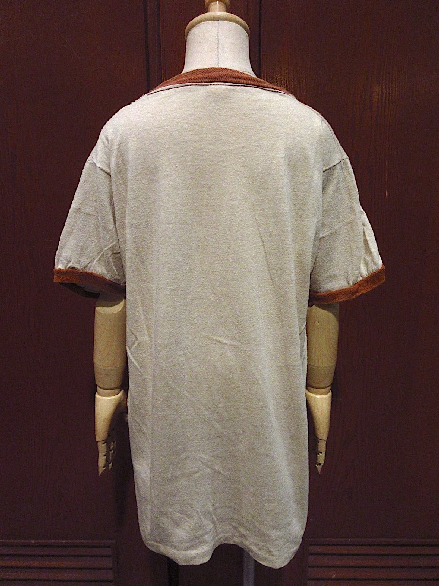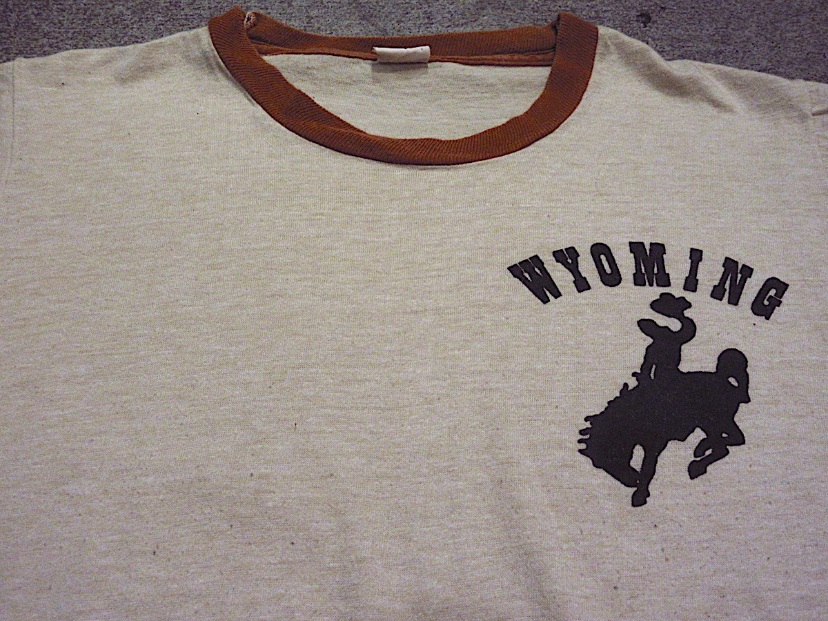 1970's キッズ WYOMING プリント リンガーTシャツ ベージュ×茶