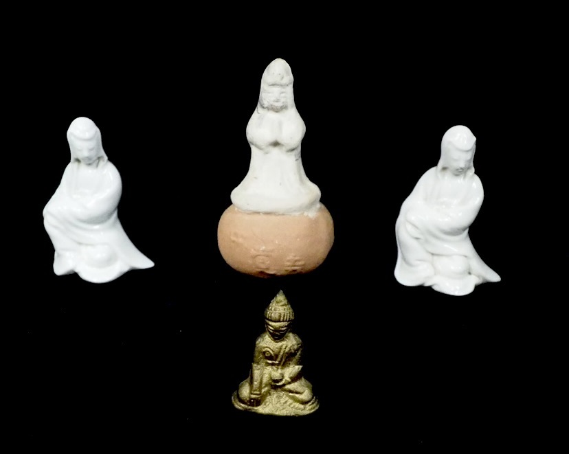 経年による味わいある表情が魅力!昭和ビンテージ 仏像4点セット 陶器 銅製 鈴 焼物 インテリア小物 置物 小さな仏像 KYN602