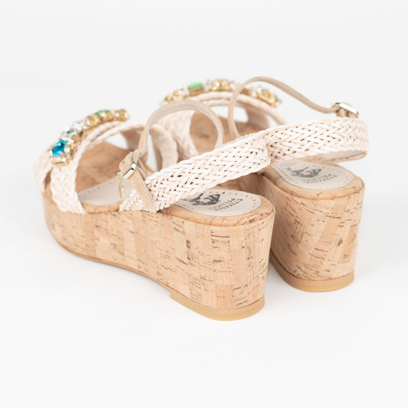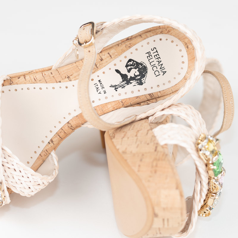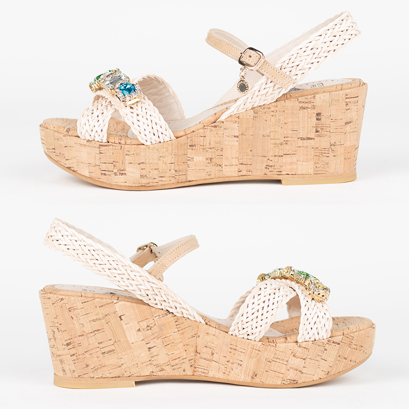 涼しげな印象のウエッジソールは本物の天然コルクを仕様しています。