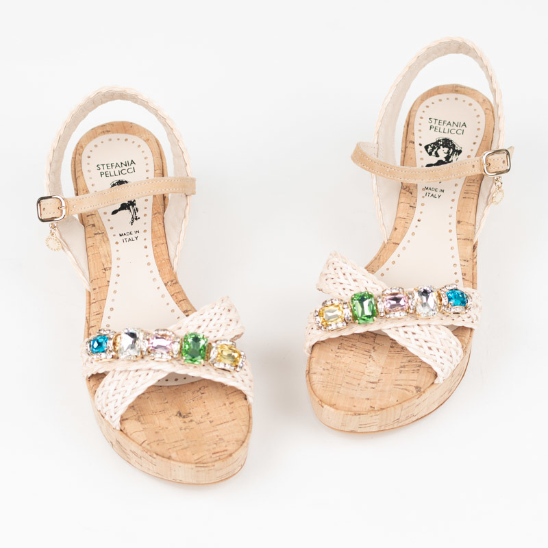 4347n【Size36(23.0cm)】在庫処分!Stefania Pellicci ステファニア ペリーチ ナチュラル メッシュレザー ウエッジソール ビジューサンダル