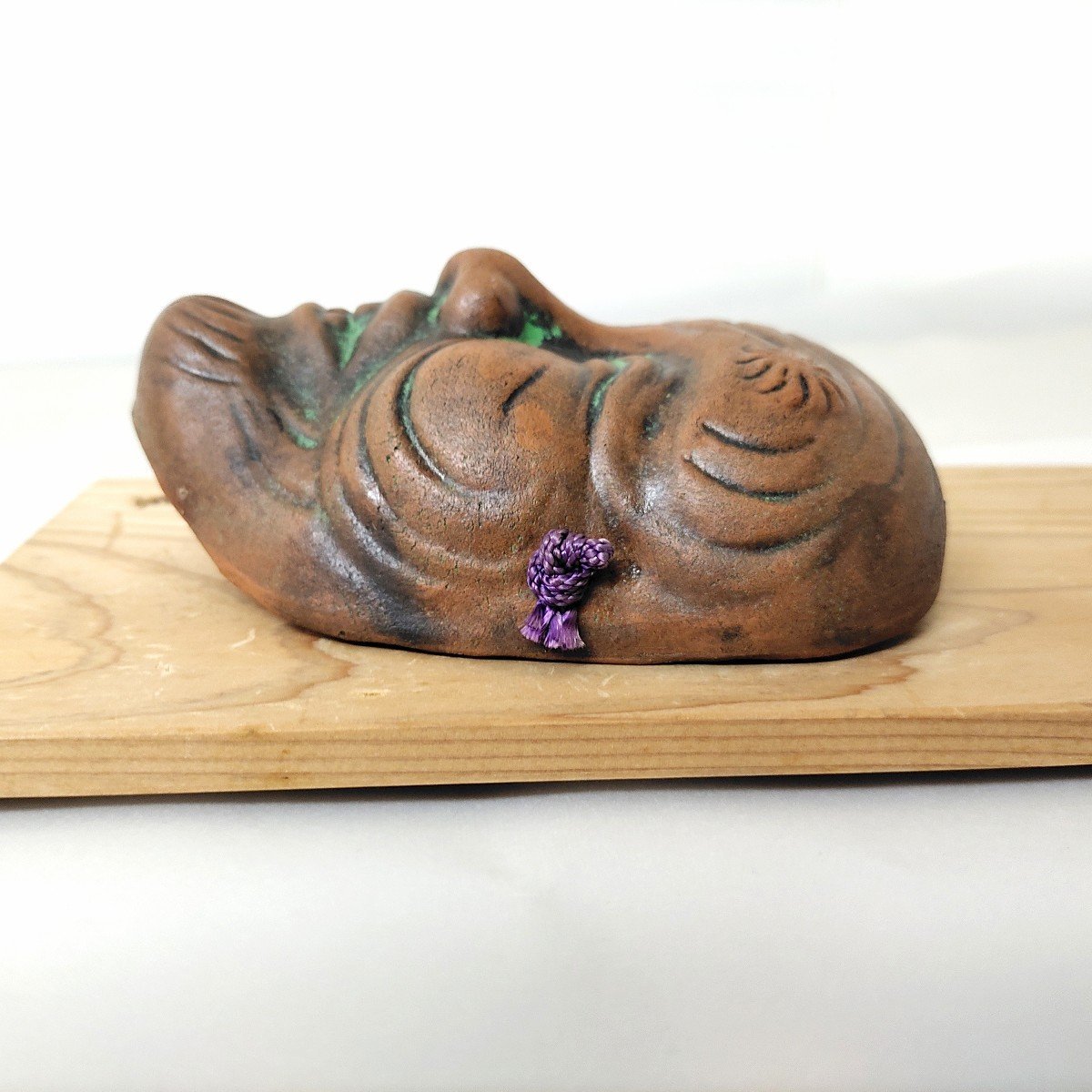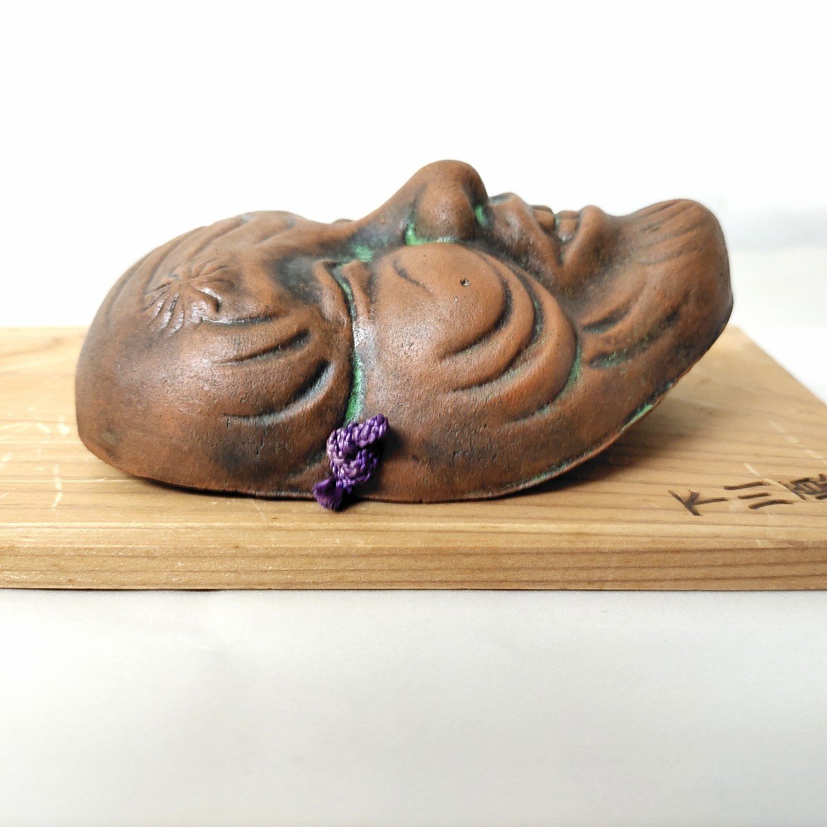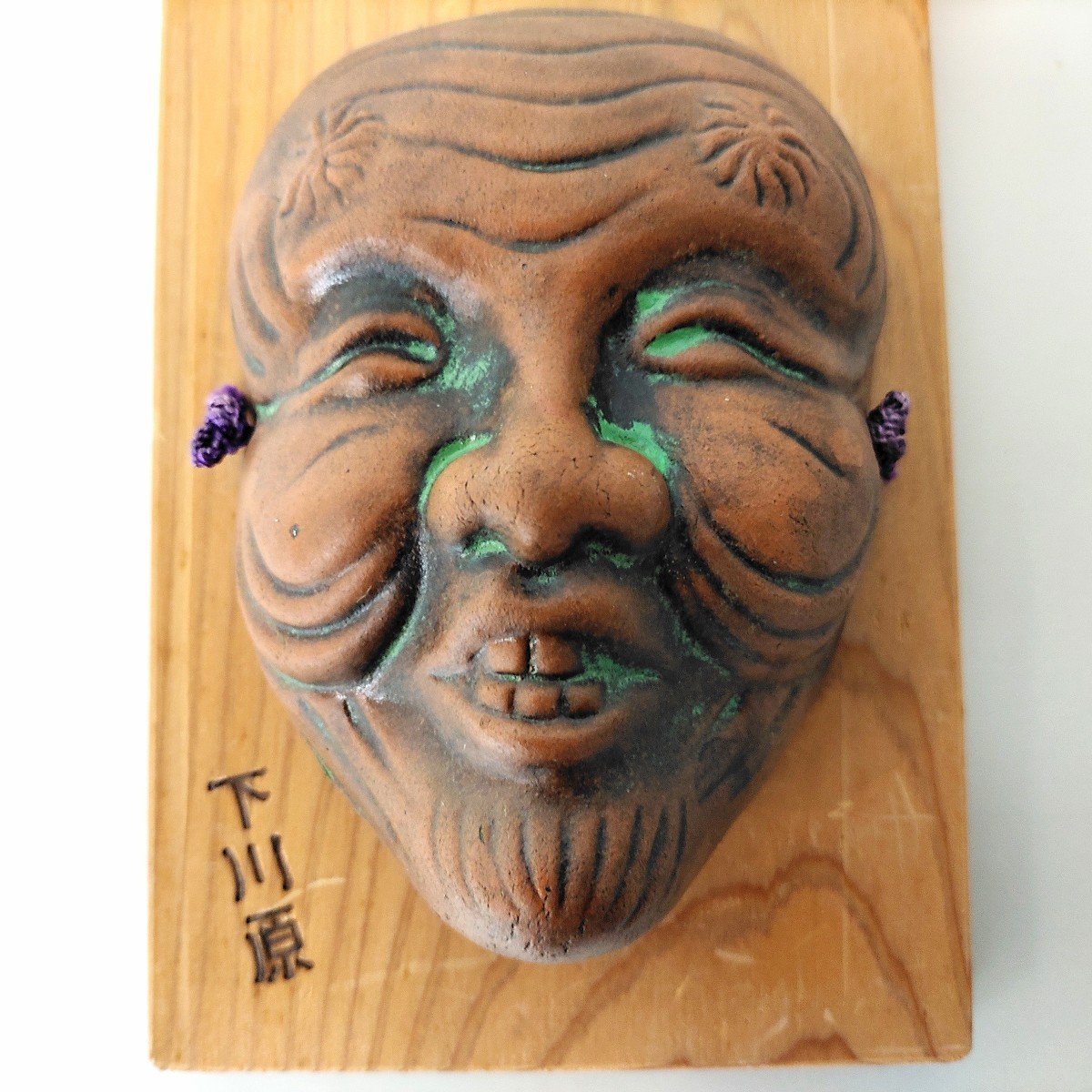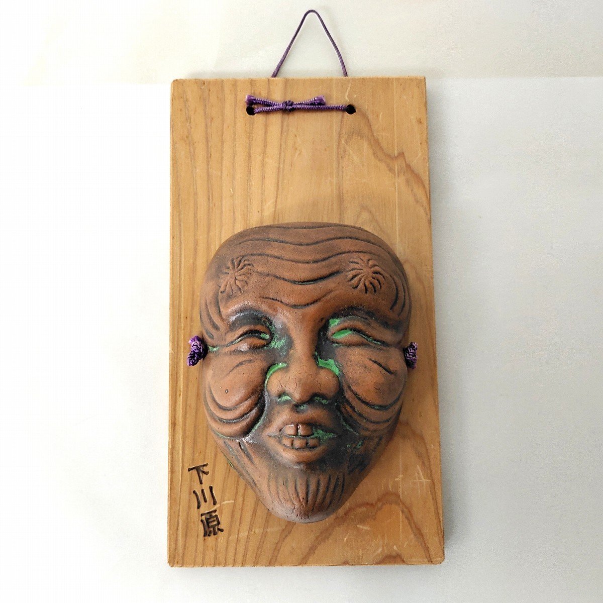 翁面(幅:約85㎜、奥行:約50㎜、高さ:約115㎜)、台座(幅:約112㎜、奥行:約7㎜、高さ:約205㎜)、状態ランク:C キズ、ヨゴレあり。その他状態は画像をご確認ください。