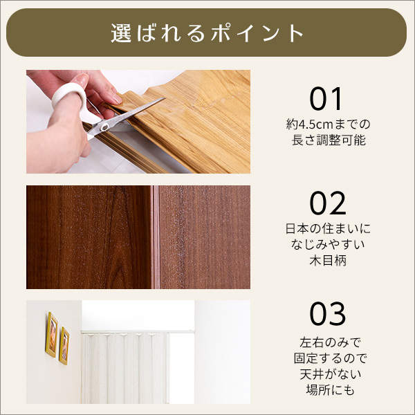 つっぱり式の木目調アコーディオンドア 100×175cmサイズ!