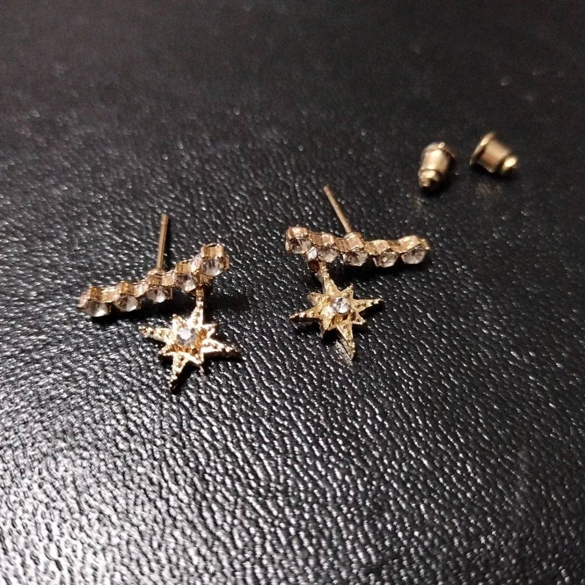 新品未使用 ピアス ゴールド 星 スター レディース 韓国 ブラブラ 素敵 ペンダント ラインストーン かわいい ジュエリー Star 綺麗 #D18-2