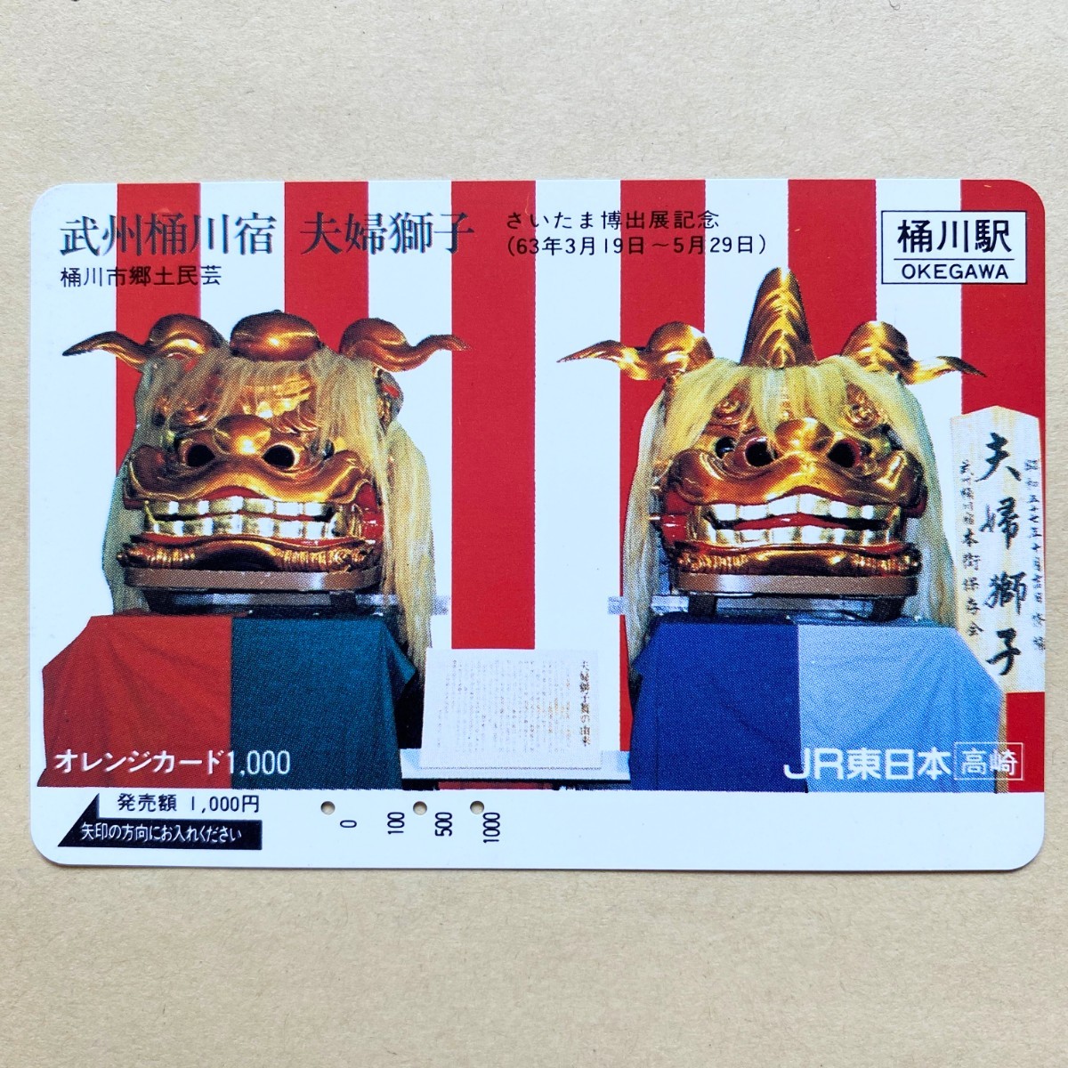【使用済】 オレンジカード JR東日本 武州桶川宿 夫婦獅子