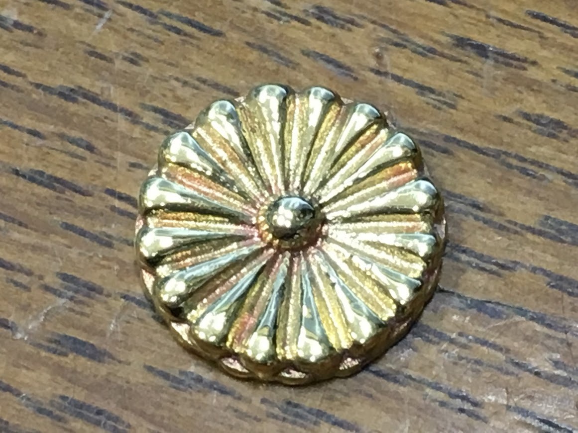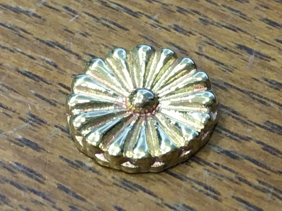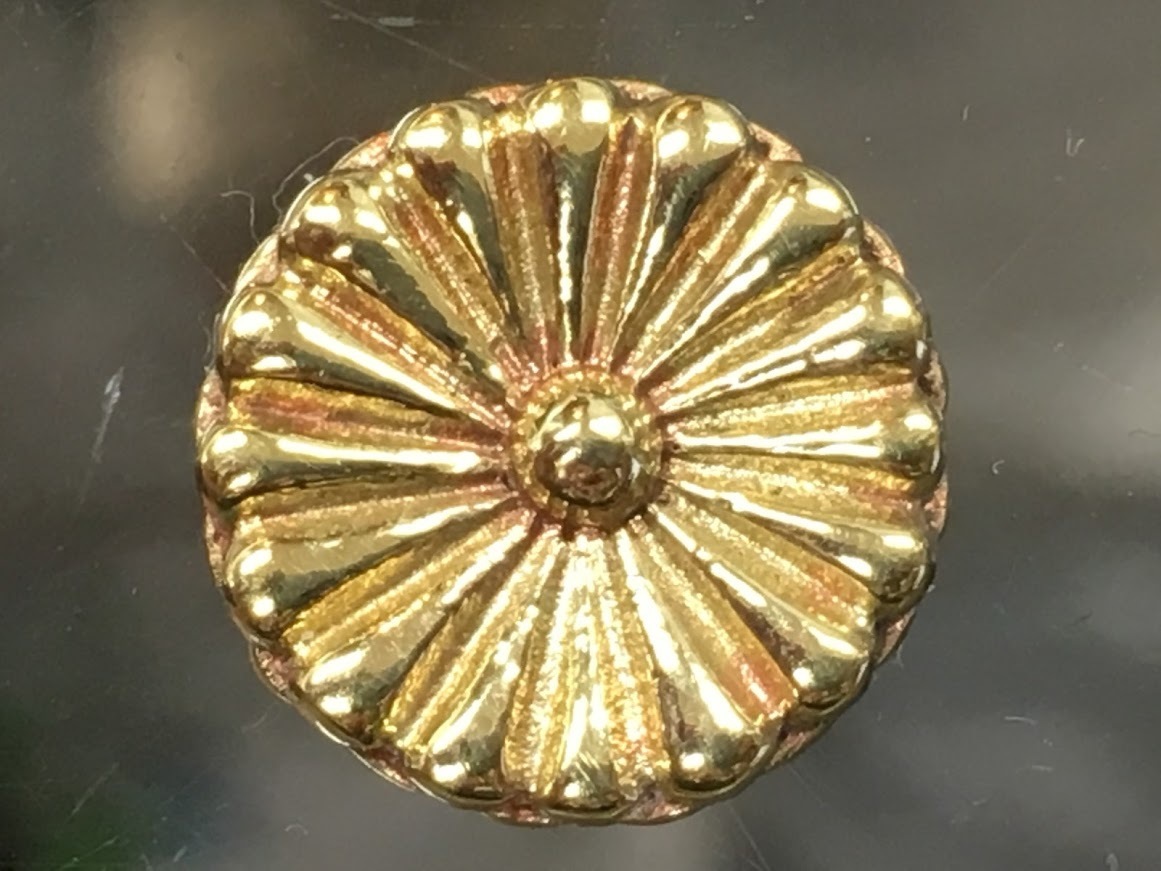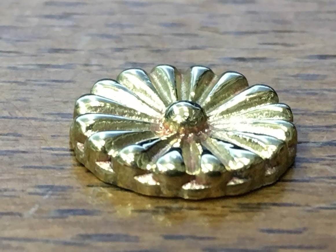 直径12mm、厚み2.4mmの真鍮製の十六弁表八重菊です。