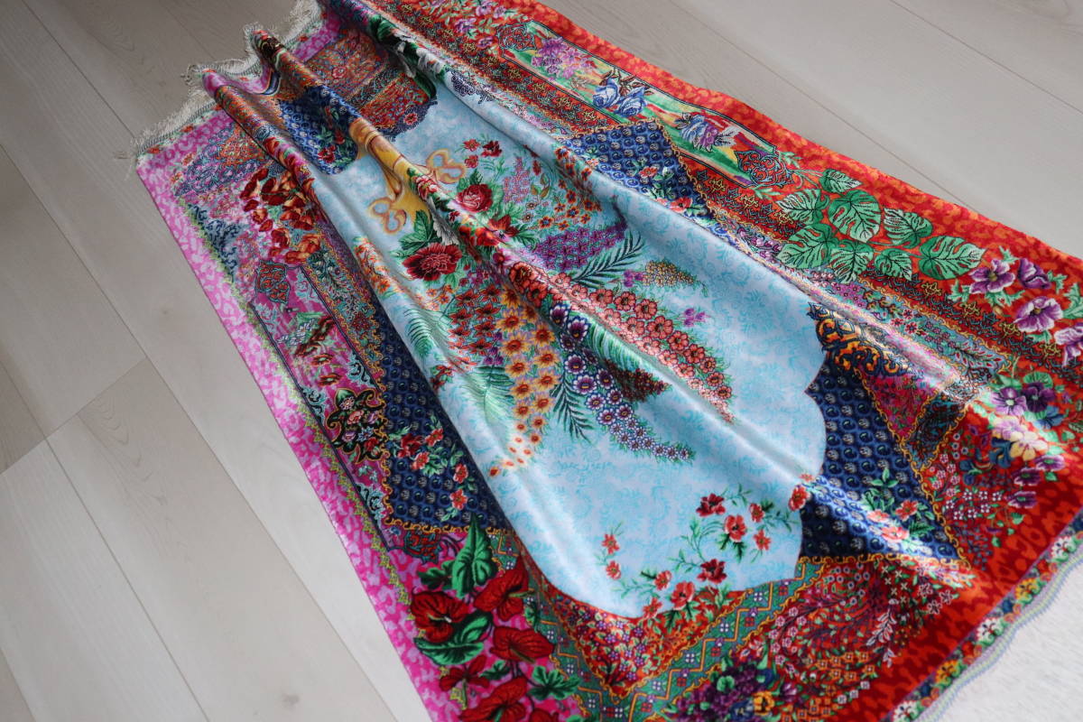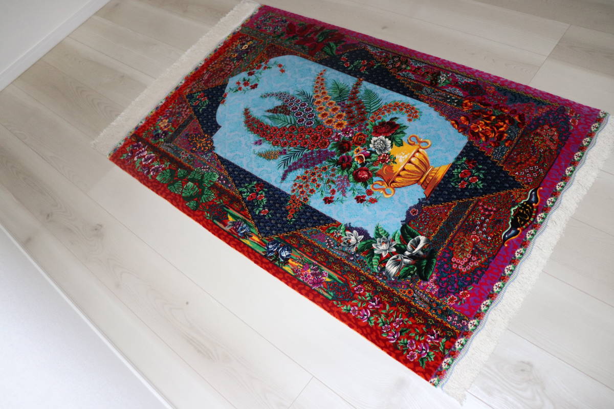 美しい色使いが特徴で、鮮やかな色彩のものから、パステルカラーを基調とした独特の色彩感覚のものが多くみられます。 玄関マットとしての使用はもちろんのこと、タペストリーなどとしてもお使い頂ける素適な絨毯です。