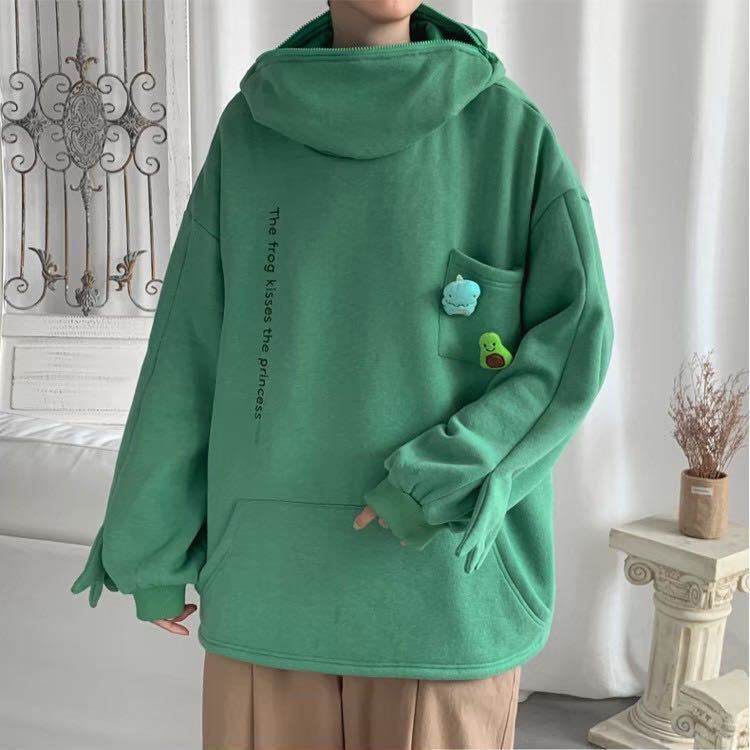 『 パーカー カエル フード トップス ビッグシルエット 長袖 』