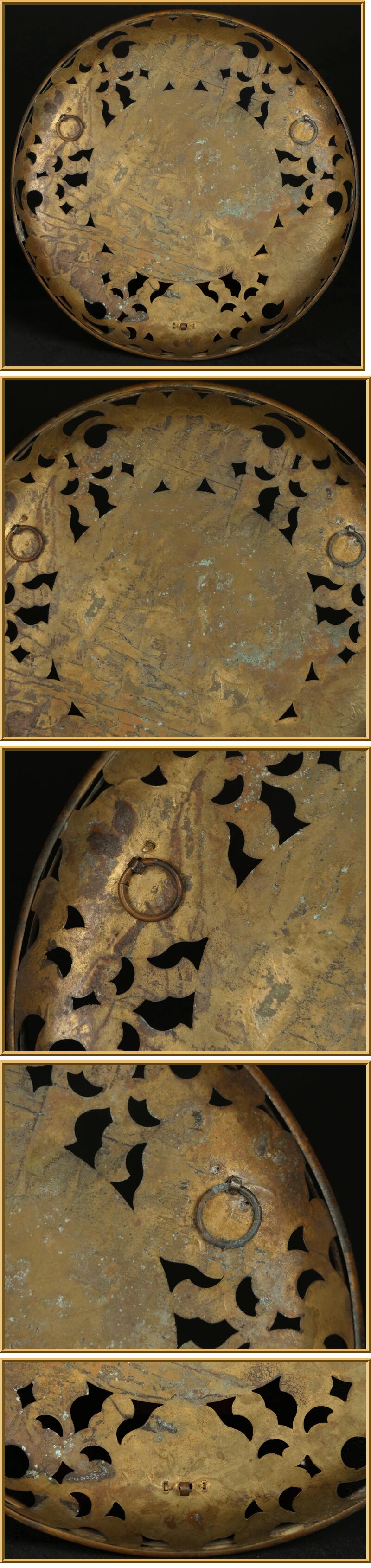 ★名品 【 金銅 透彫華籠 】 華鬘 仏具 古美術 波兎 骨董 仏堂荘厳具 ★