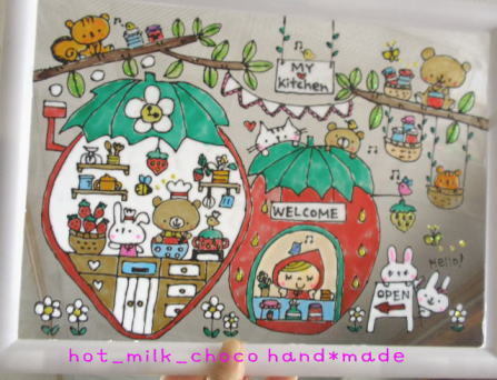 ★NO.A33★ステンドグラス風・A4サイズ・イチゴ・苺・ジャム・お店・ショップ・キッチン・女の子・ハンドメイド・飾り・インテリア・雑貨