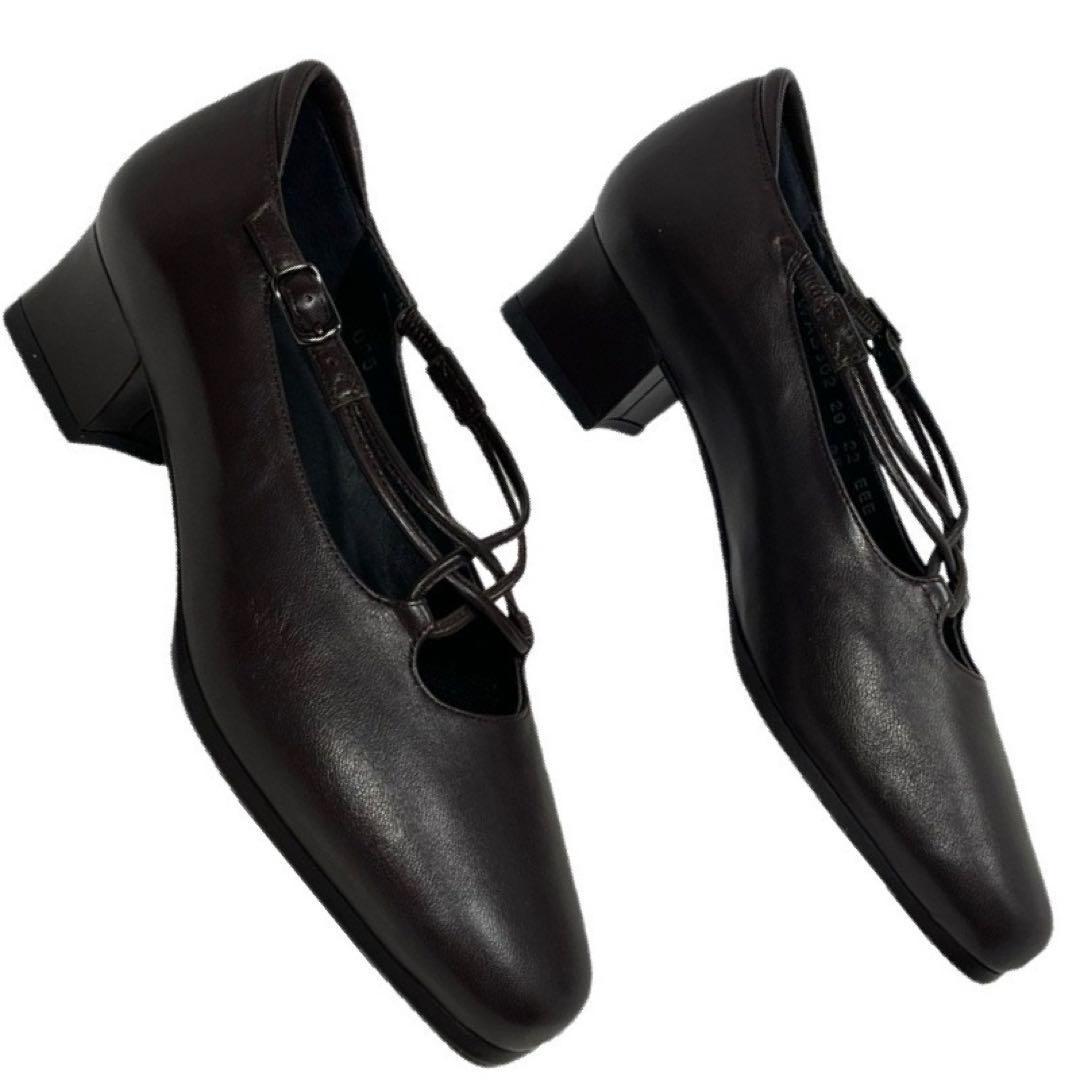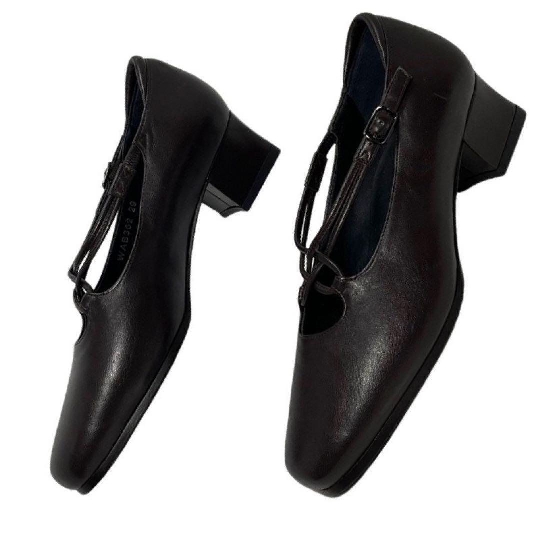 パンプス ローヒール スクエアトゥ チャンキーヒール