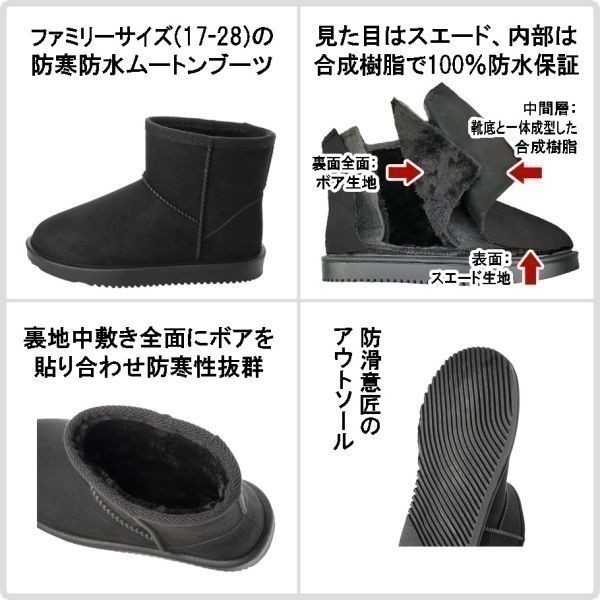 22076 新品 防寒ブーツ ブラック 黒 26.5cm 防水 スノーブーツ ムートンブーツ レインブーツ 寒さ対策 防寒対策 防滑底 メンズ 男女兼用