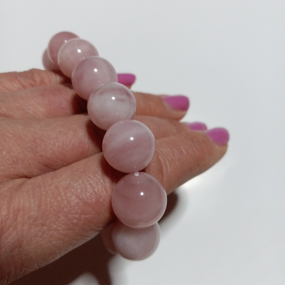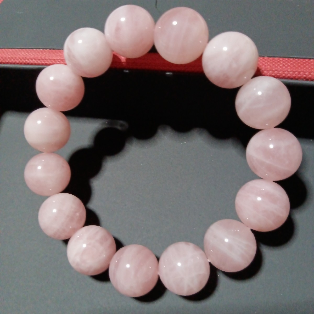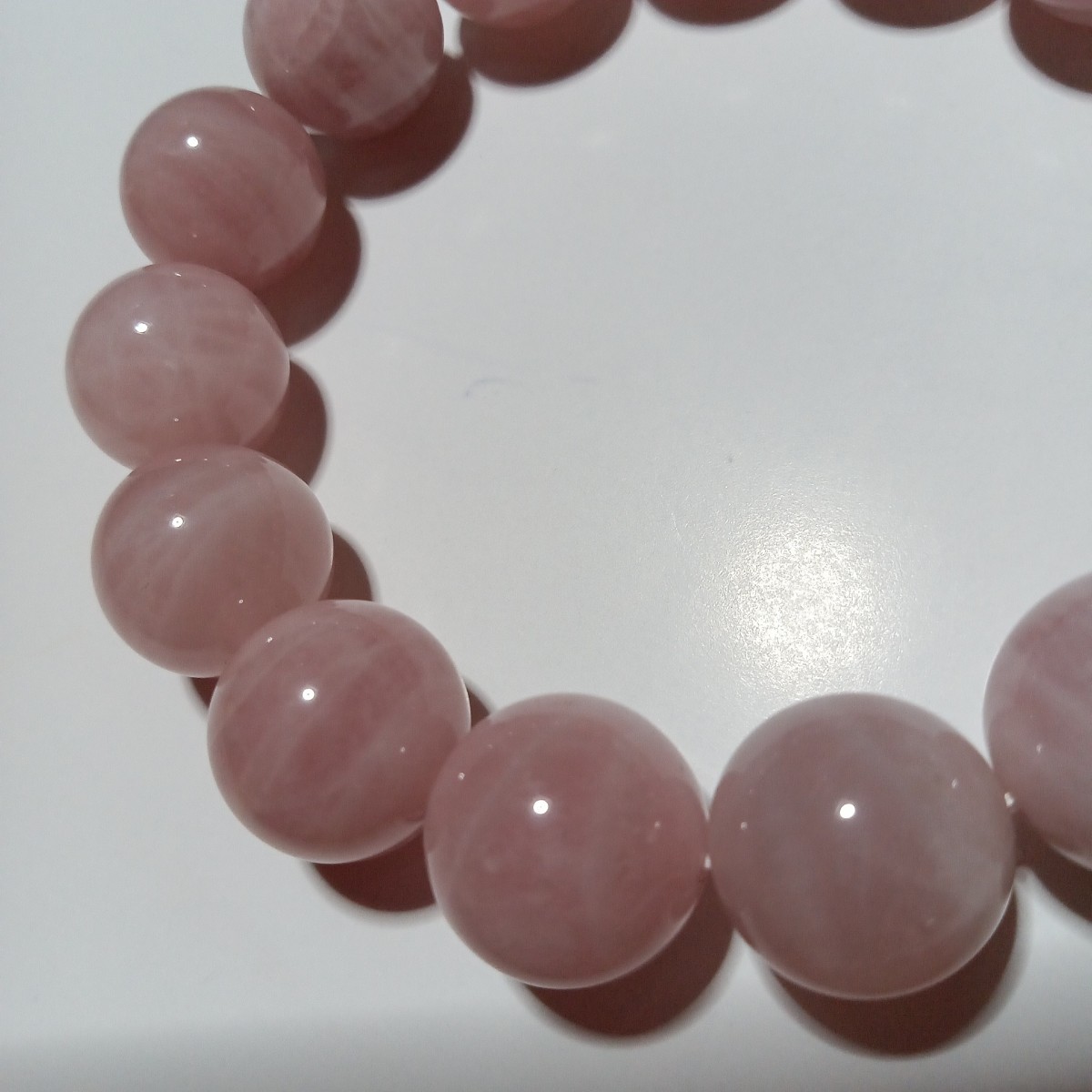 高品質大玉マダガスカルローズクォーツの素敵なブレスレットです。優雅で美しいピンク色は、愛と美、優しさを象徴しており、見る人の心を和ませます。