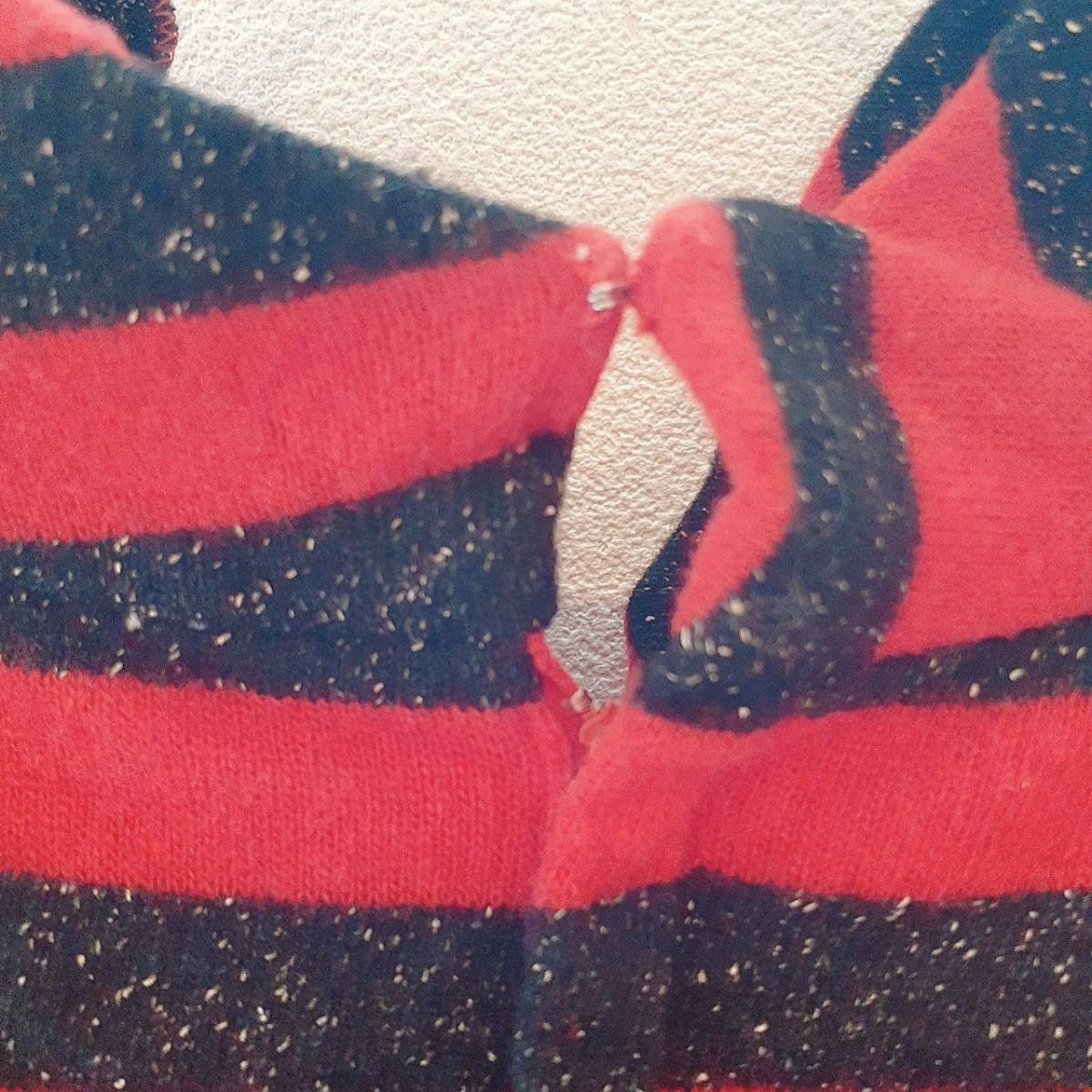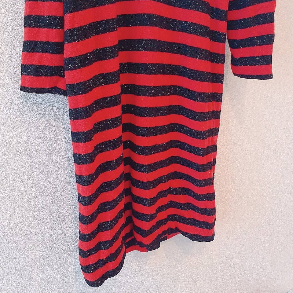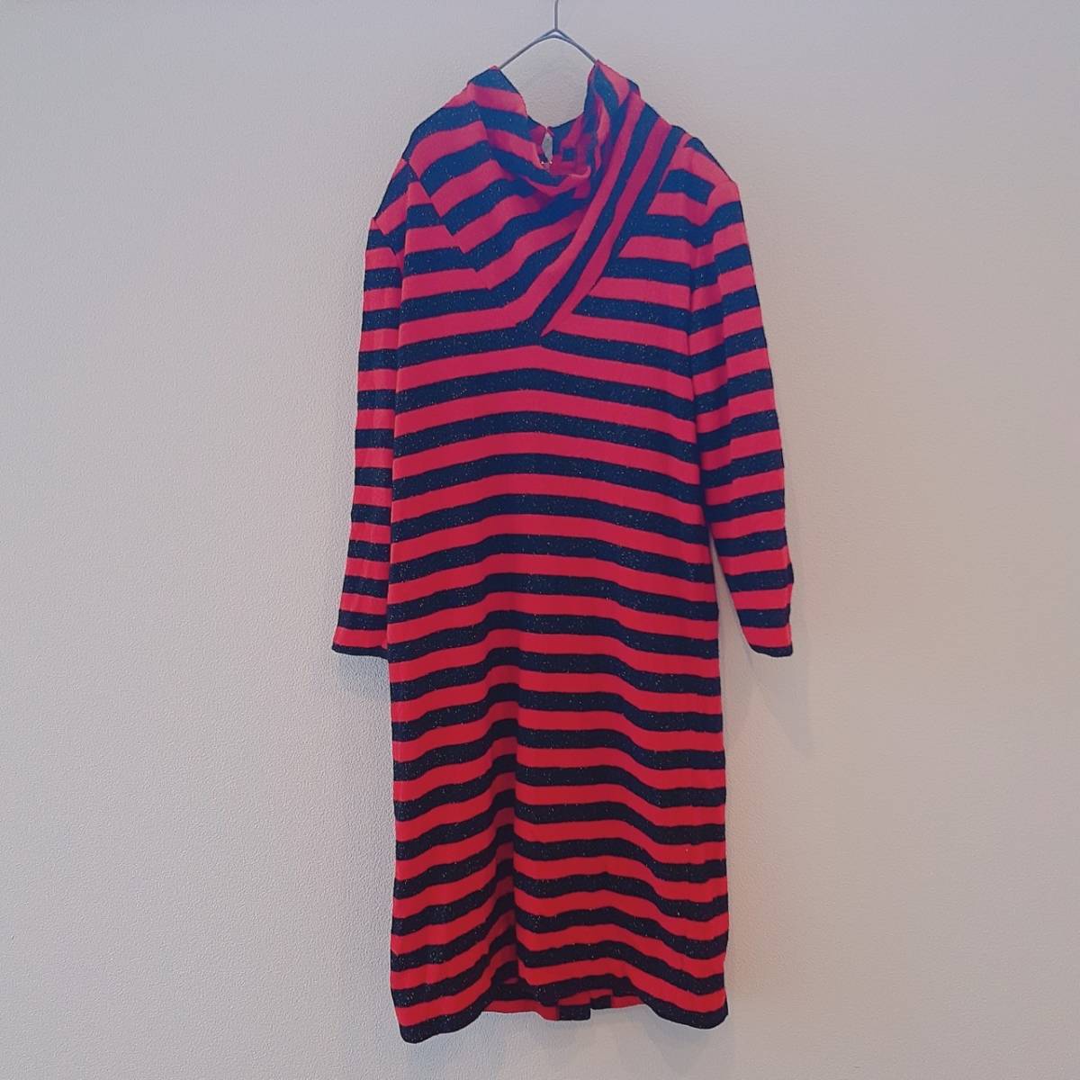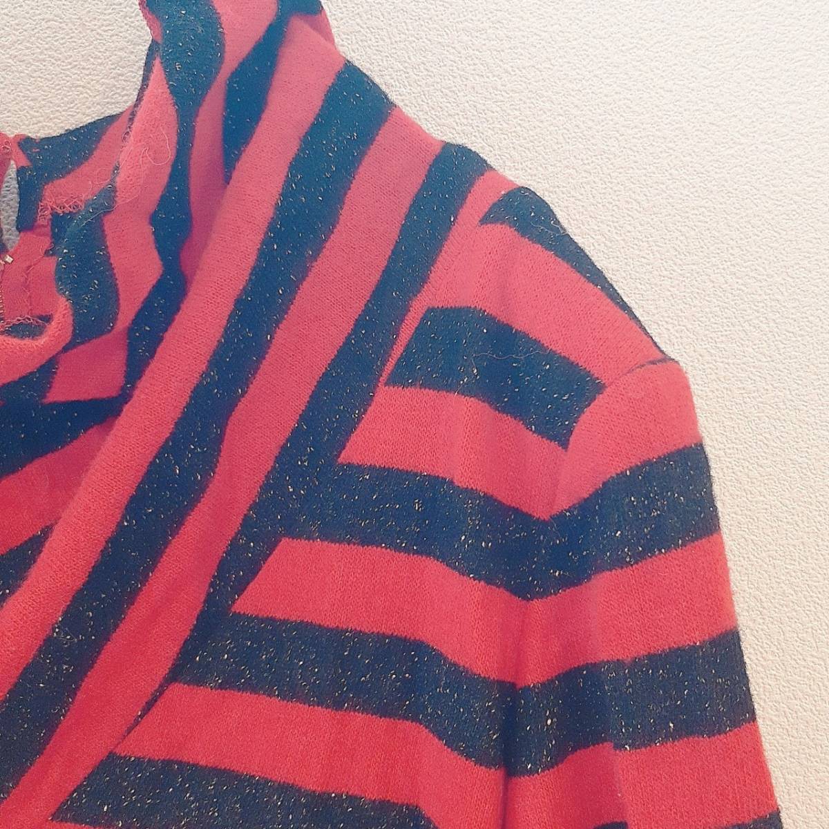 スカート ワンピース ボーダー 赤×黒 ラメ 後ろチャック 肩パッド付 レディース |