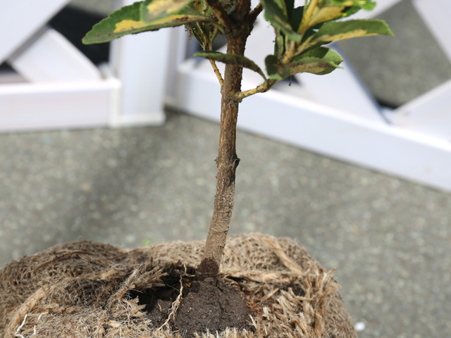 ナカフキンマサキは最近人気が出てきている品種。葉の中央に黄斑が入り綺麗な品種です。カラーフラワーのような使い方をすればアレンジ次第で多用できます。
