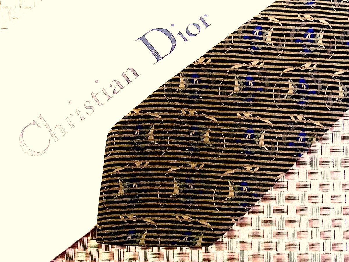 ★RB0297★【葉っぱ 植物 ストライプ 柄】ディオール【美品】ネクタイ