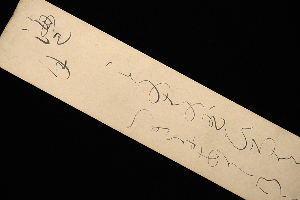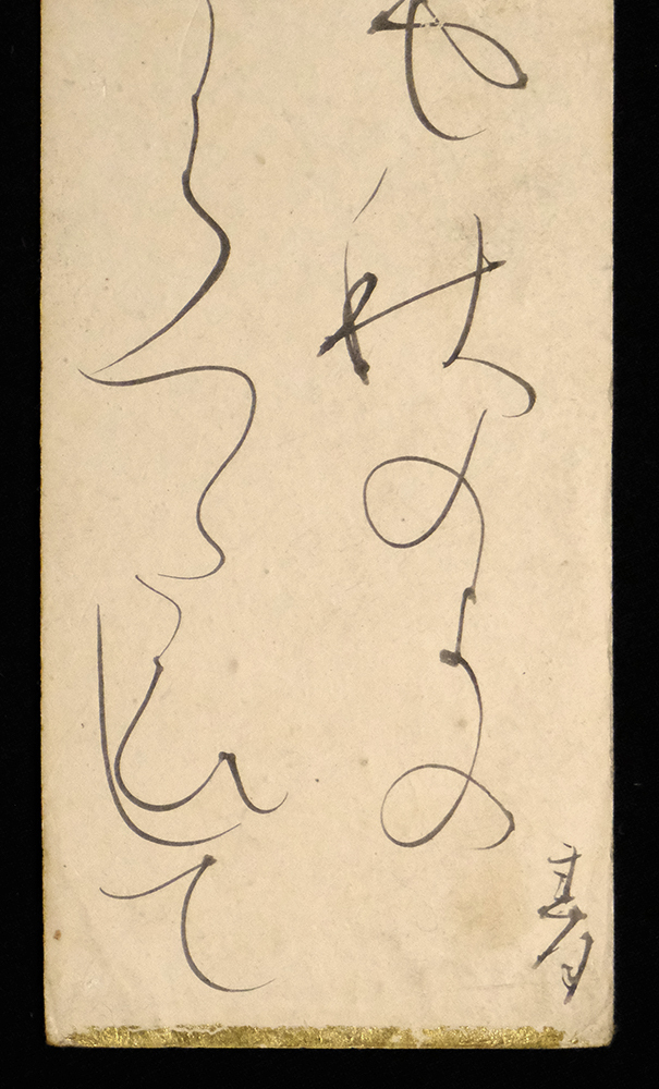 「海辺月 ことのはの玉ひろはばや秋のよの 月にあかしのうらつたひして 蓮月」 紙本肉筆未装短冊1葉 作品寸法:36.2cm x 6.0cm 作品状態:実際の品を画像にてお確かめ下さい。 大田垣蓮月(おおたがきれんげつ) 幕末・明治の歌人。一説に父は伊賀上野藩主藤堂氏、大田垣光古の養女。名は誠、蓮月は号。歌道を千種有功に学び武芸にも長じる。夫と死別後、神光院月心の門に入り、尼となる。小沢蘆庵・六人部是香に私淑し、若き富岡鉄斎を薫陶して頼三樹三郎・梁川星巌・梅田雲浜らと親交する。また手捏ねの茶器に自詠の歌を彫りつけた蓮月焼と称される陶器を作る。明治8年(1875)歿、85才。 出典:講談社『日本人名大辞典』 |