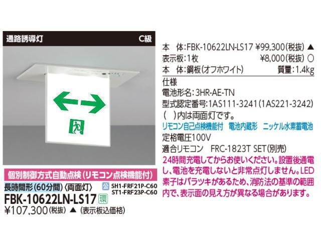 ☆東芝 非常口 避難口 天井埋込形誘導灯(C級形)+表示板セット 両面灯 FBK-10622LN-LS17+ET-10655★10242 |