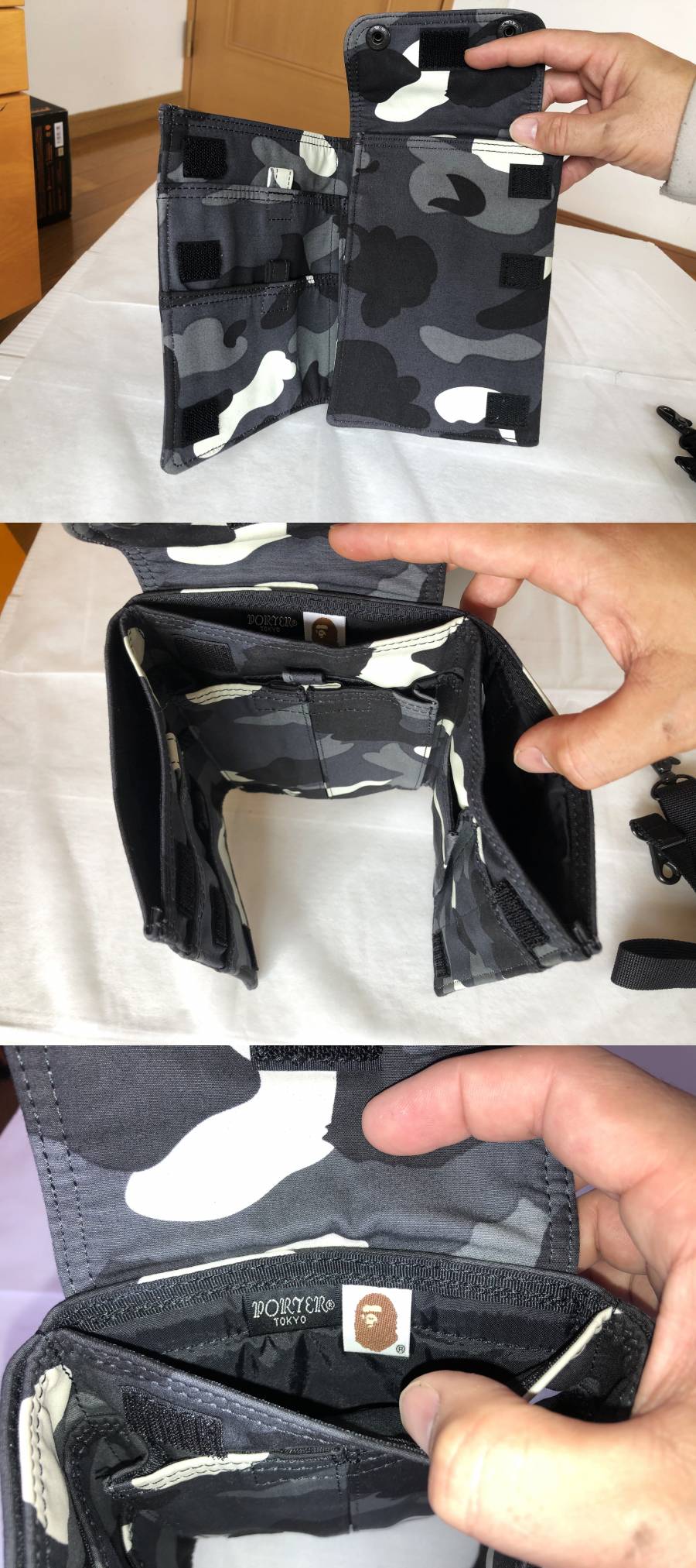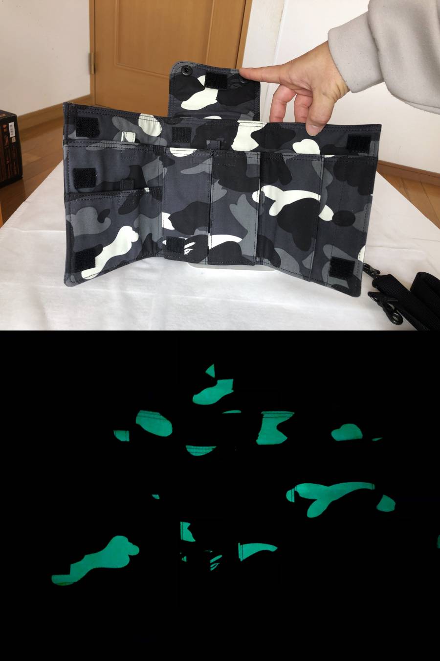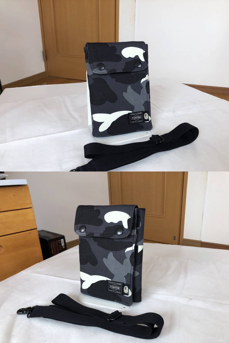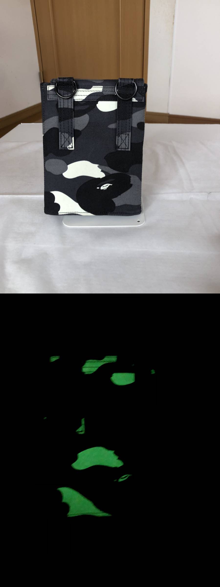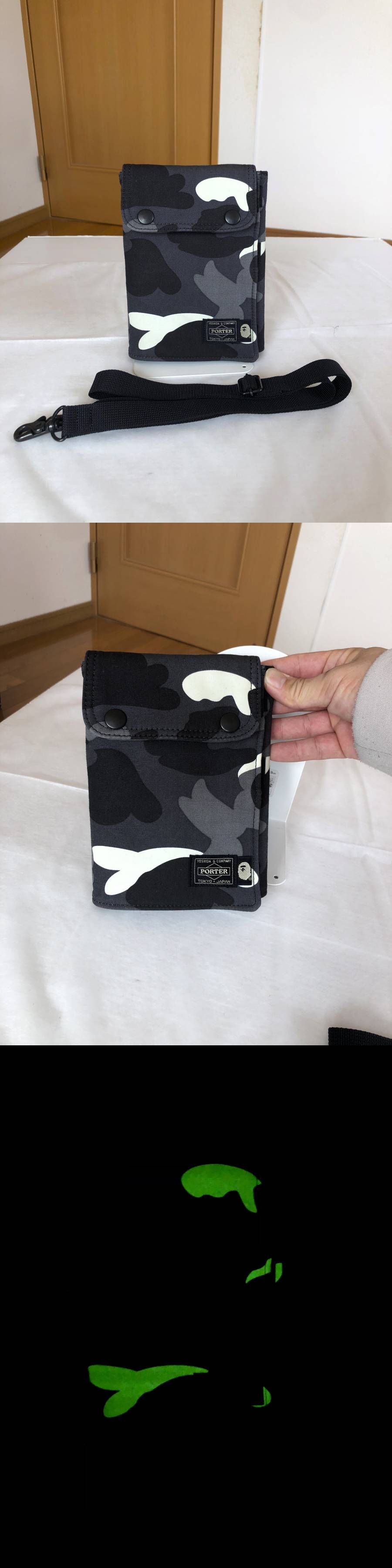ご覧いただきありがとうございます。 激レアのエイプコラボです♪ エイプコラボの数ある中の1番人気の蓄光モデルのCITY(シティー)です♪ 画像のように白地の部分が、暗闇に発光します!!!激イカシます!!!!現在では、販売されておりませんのでもの凄く貴重です♪ ボタン裏の刻印が、HATO☆HASIをしっかり確認しておりますのでもちろん正規品です♪ 色々な使い方ができる多機能バックです!!!!! <商品説明> ポーター×エイプ CITY トラベルポーチです。 定価:30,000円。サイズ(約):横幅13㎝×高さ20㎝ 。 多機能バックになります♪。 <仕様>①そのままショルダーバッグとして。②ショルダー紐をはずしてバッグ本体の裏側にベルト受けが付いていますのでご自身のベルトを通してウエストバッグとしてもご利用いただけます!!! ③カードケースとしても良いです♪④旅行用のバッグインバッグにも良いです♪ <商品状態> 画像より大変きれいなバックです。フラッシュ画像もUP致しました。表面生地もきれいです♪ ロゴ完璧です♪表面ボタンもきれいです♪中身もきれいです♪ 大変きれいな商品ですが、1度は、人の手に渡ったものですのであまりにも神経質な方は、ご遠慮ください。 送料は、レターパック 520円です。 まず出ないと思いますのでぜひご検討ください♪激イカシます!!!!!!