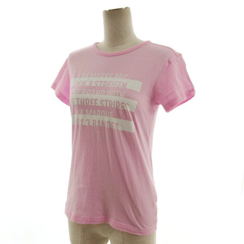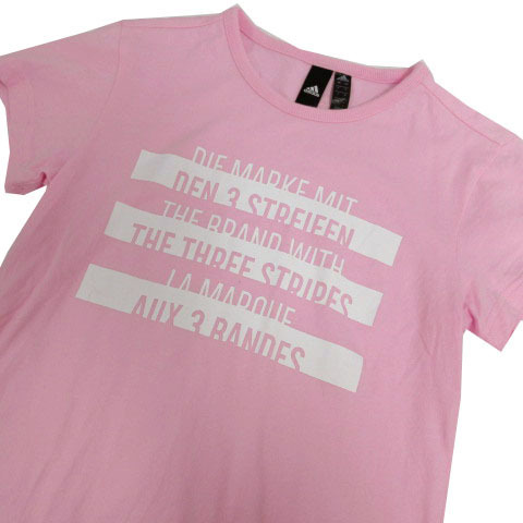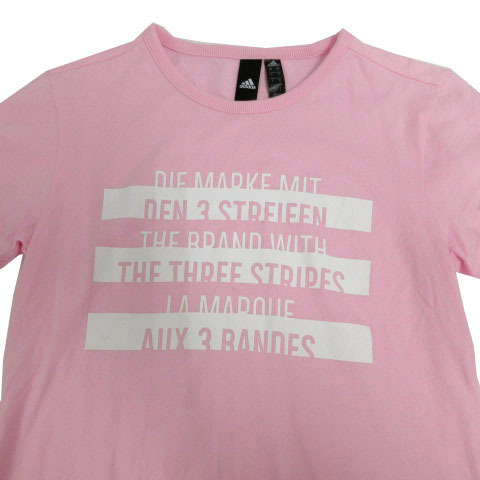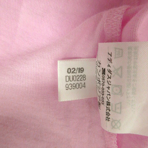 アディダス adidas Tシャツ DU0228 丸首 プリント 半袖 コットン ピンク ホワイト 白 L レディース