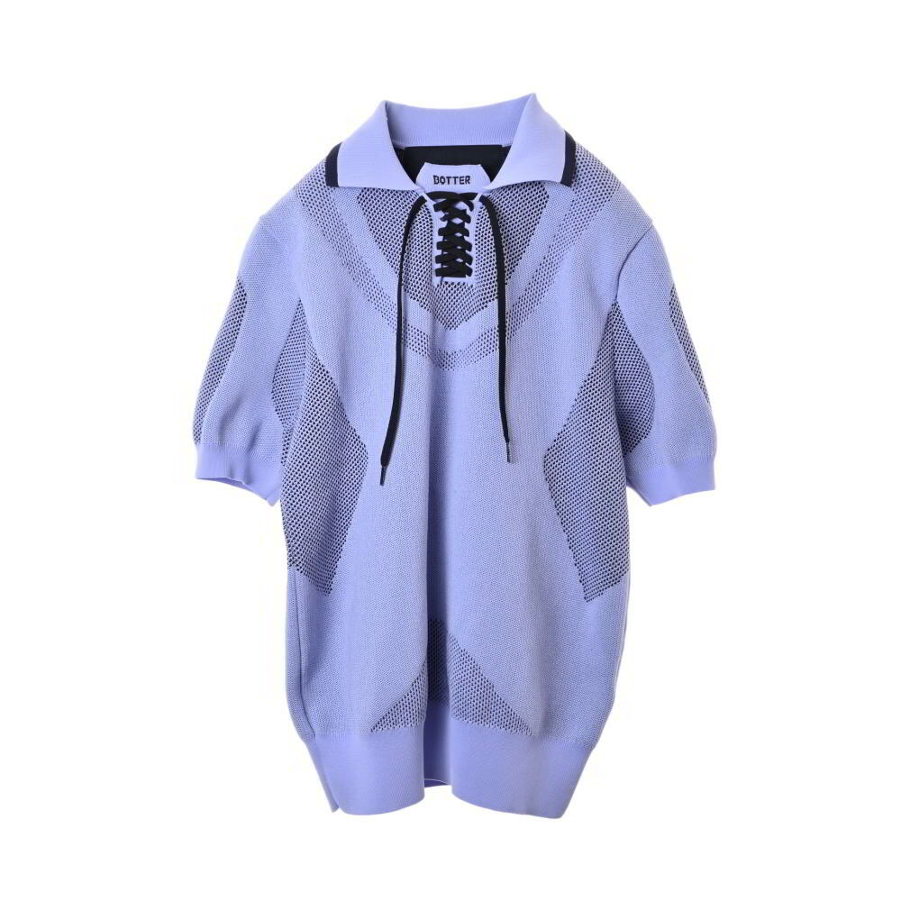 美品 BOTTER レースアップ ポリ ポロシャツ M パープル ボッター KL4BPULS37