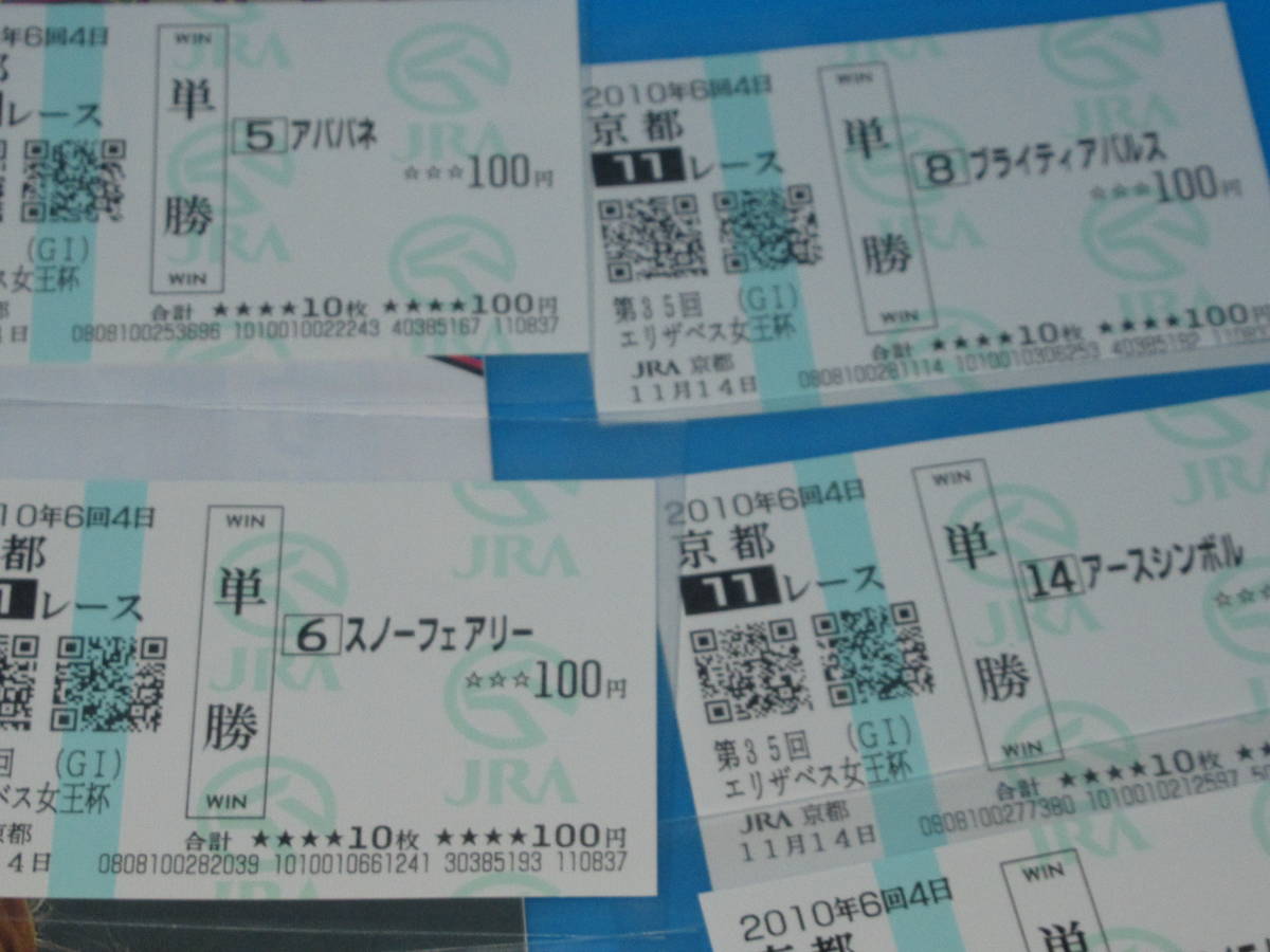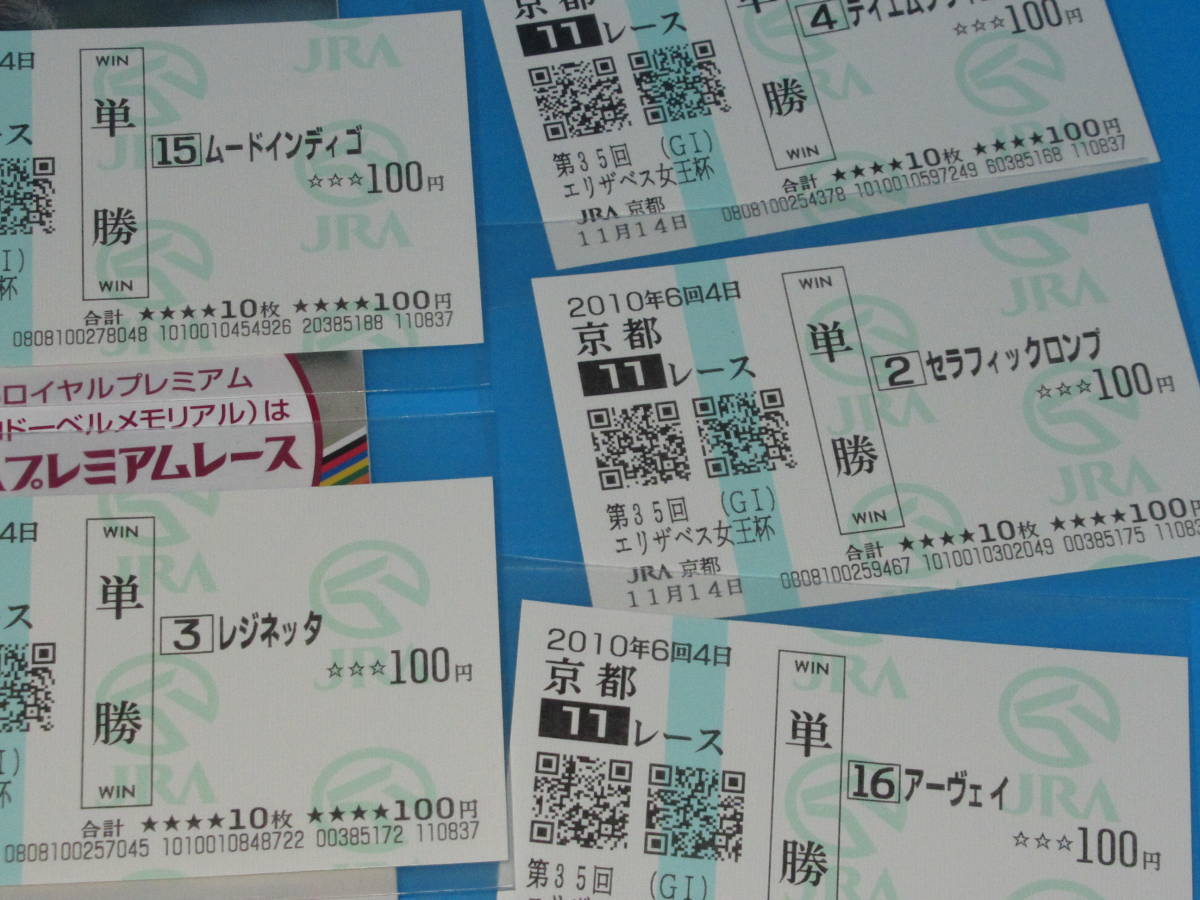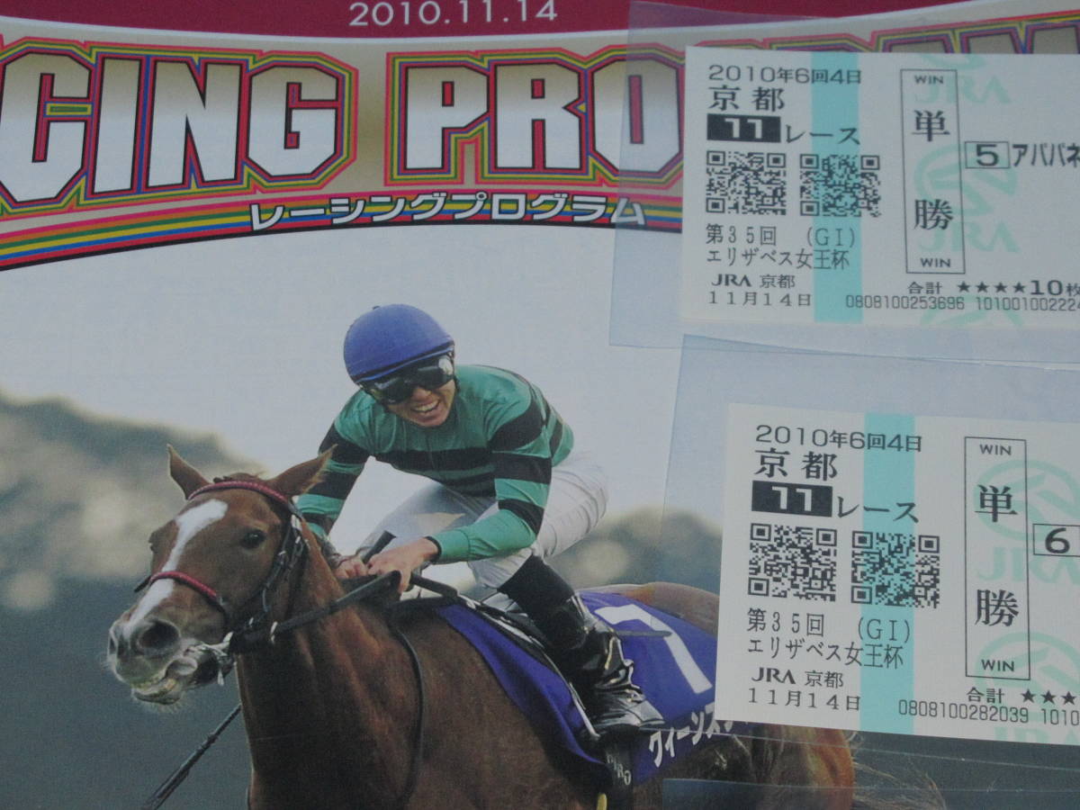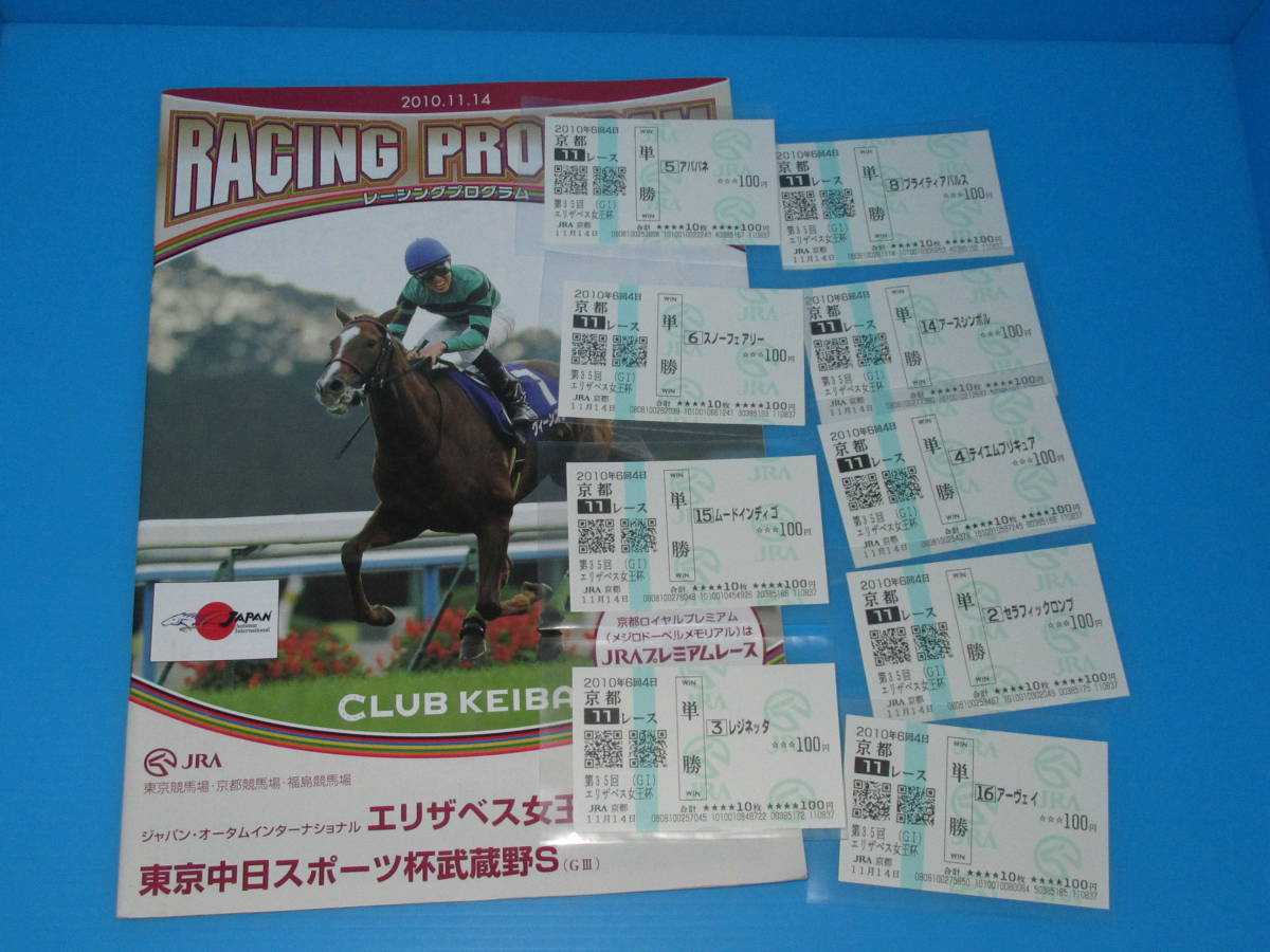 匿名送料無料 懐かしの単勝馬券★スノーフェアリー 現地的中ほか9頭+レープロ 第35回エリザベス女王杯 GⅠ 2010.11.14 京都競馬場 即決!競馬 ウマ娘