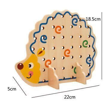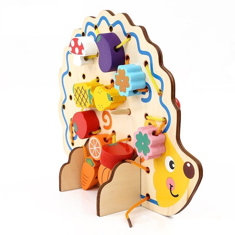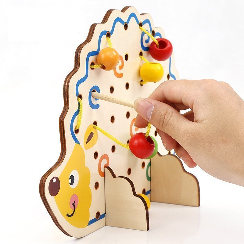 CJM352★おもちゃ ハリネズミ 紐通し 知育玩具 モンテッソーリ教育 木製パズル 集中力 指先感知 想像力 創造性 ビーズ バランス
