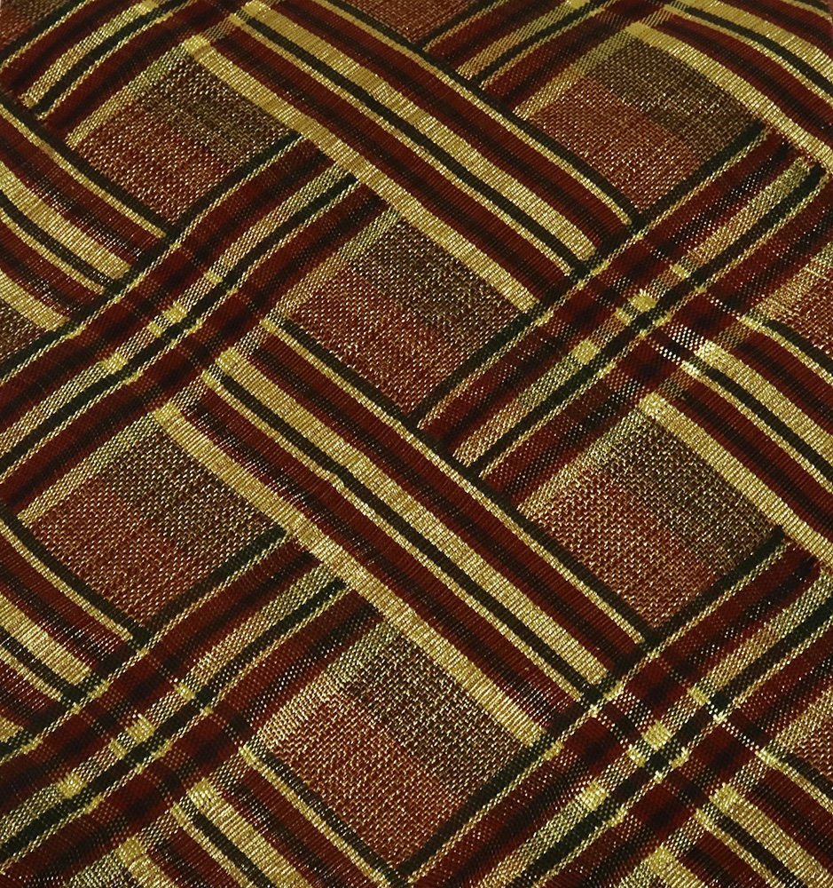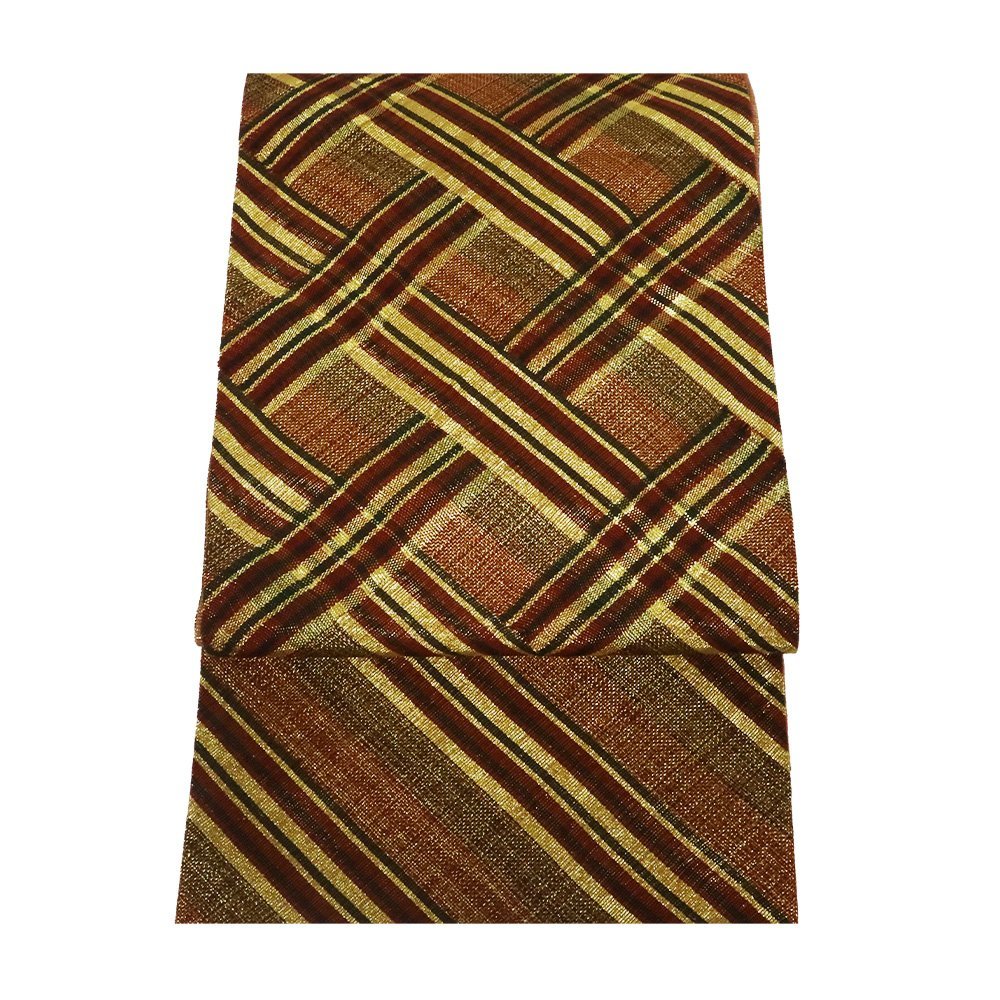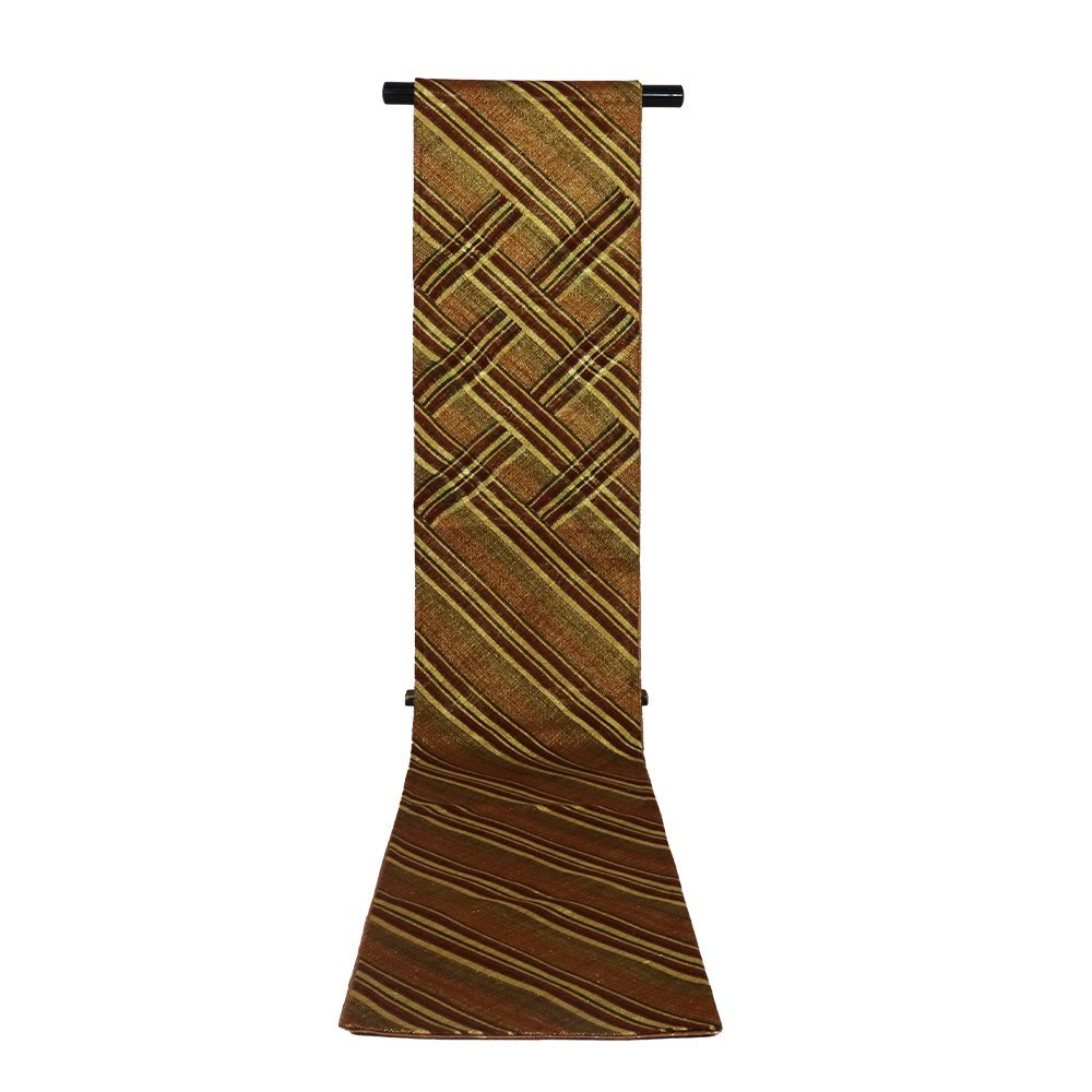 | ひなや謹製 西陣織袋帯 金・赤紫・黒・緑地 菱文・斜め縞 裏地・橙色地菱文 仕立て上がり | |
