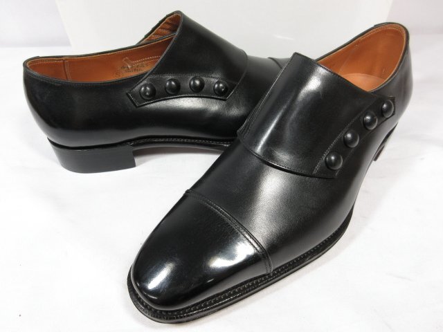 HH未使用品 【ギルドオブクラフツ guild of crafts】 レザー サイドエラスティック ボタンシューズ 紳士靴 (メンズ) 6.5S 黒 ■30HT2628■