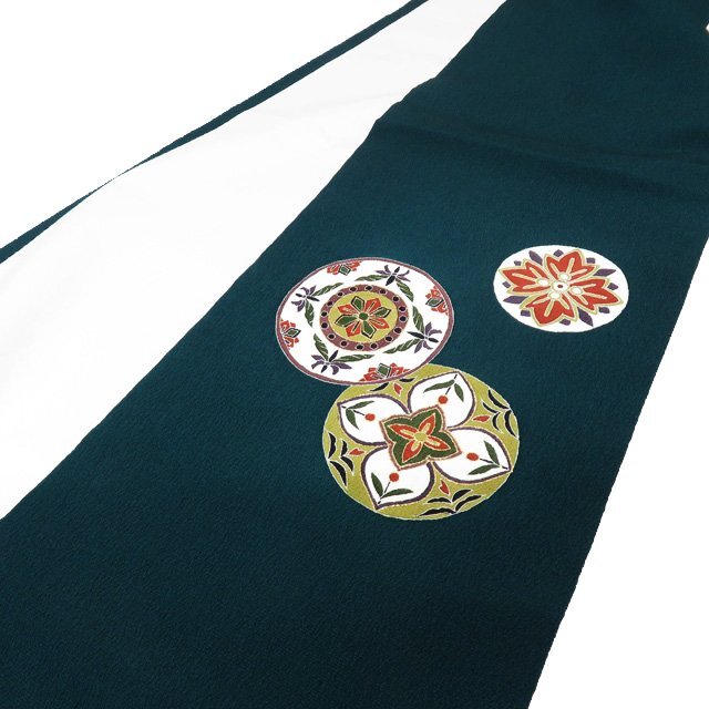 サイズ 386cm x 30cm 素材 正絹 商品ランク C ●お色 深緑色 多色 裏地に少し薄シミ、表側に染料なのか所々黒い部分がございますが、まだまだご着用いただけるお品物です。 一部商品は実店舗・他サイトでも並行して販売しておりますので売り切れの際はご了承ください。 その他多数販売中 gu- | ||||||