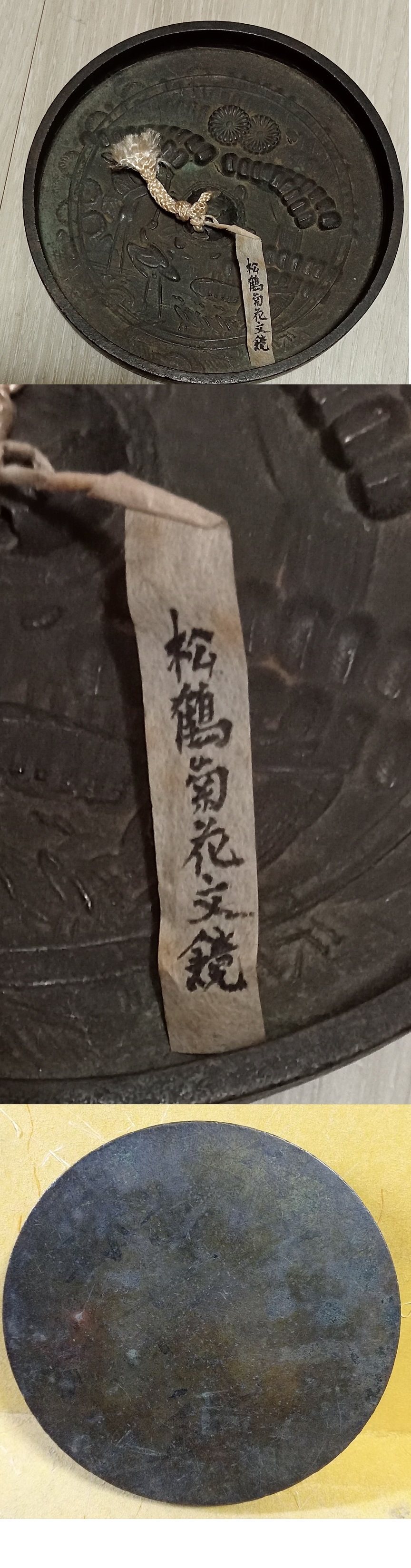 時代 古鏡 円鏡 天下一 銅蓬莢鏡 松鶴菊花紋鏡 古銅鏡 和鏡 化粧道具