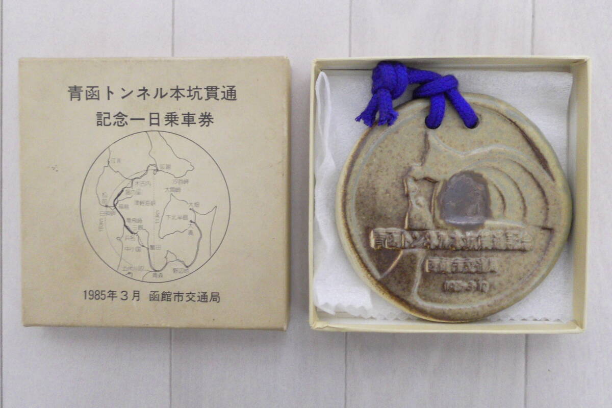 希少 送料無料 青函トンネル本坑貫通 記念一日乗車券 陶器製 1985年3月 函館市交通局 記念品