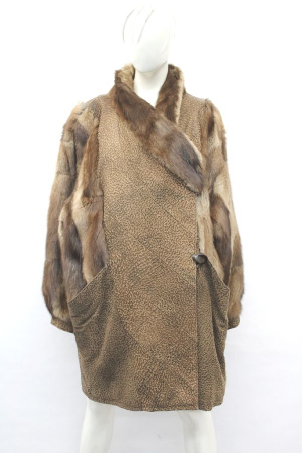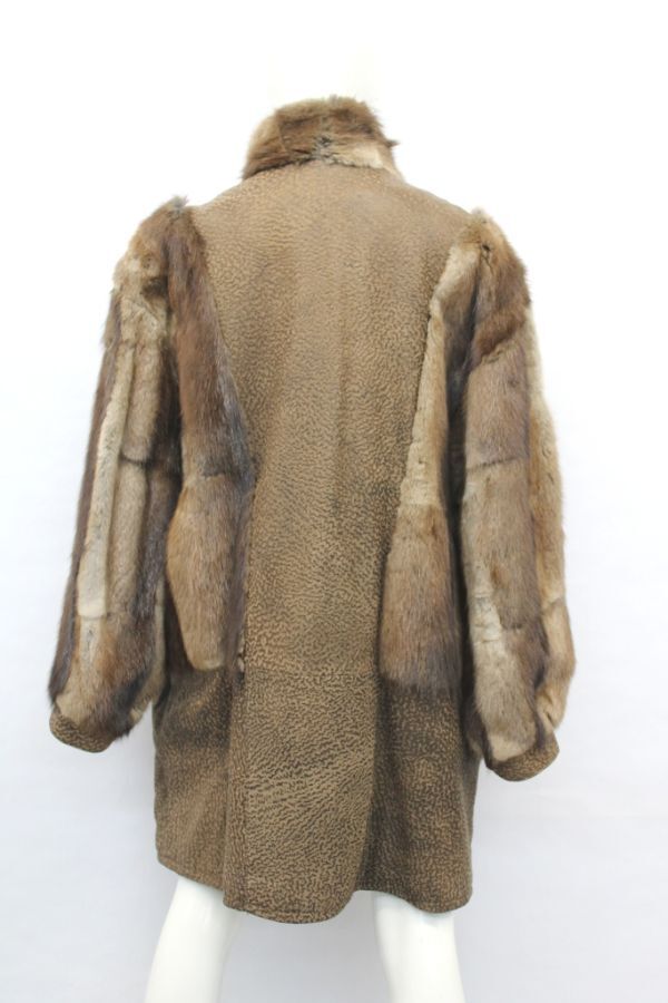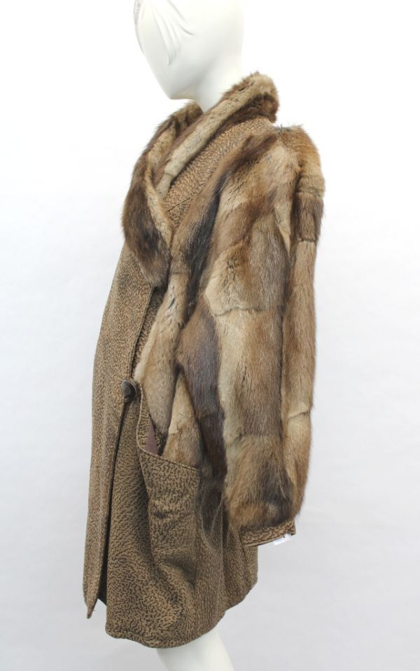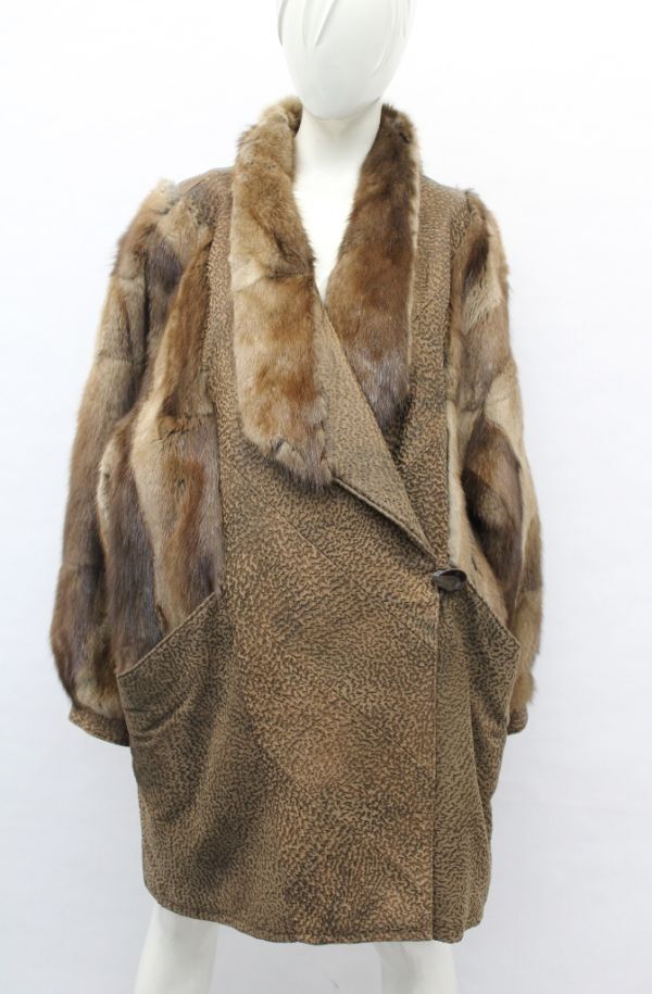 マスクラット&スエード毛皮ファー・コート アメリカンサイズ14