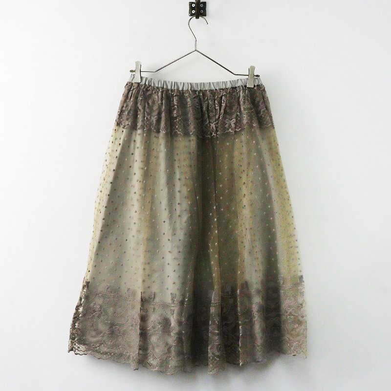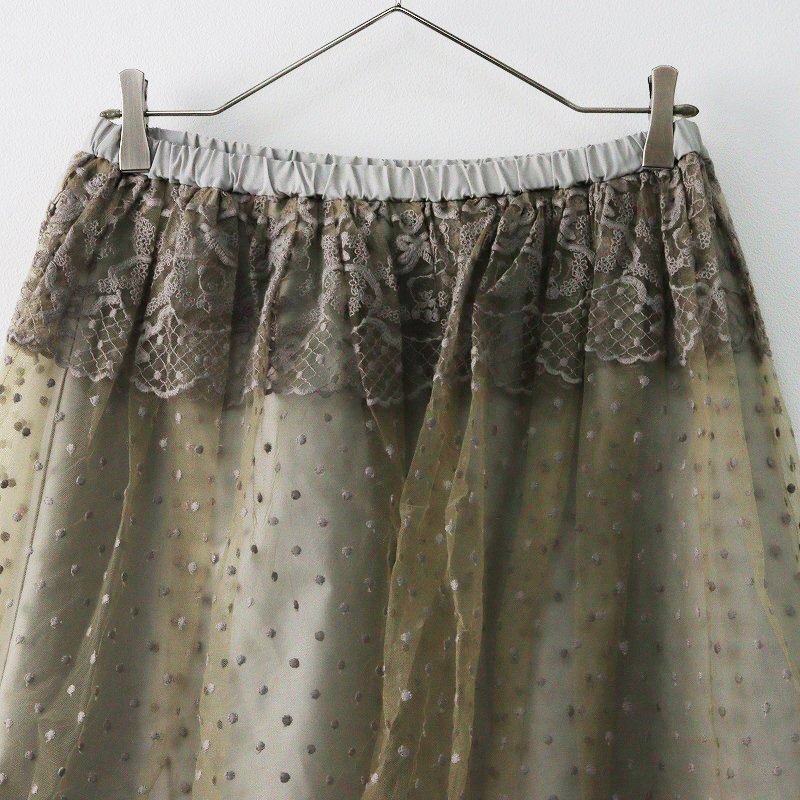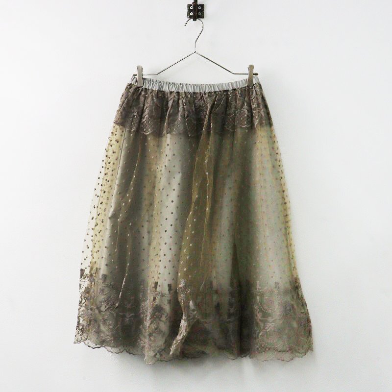 美品 2024SS ユキエモン yukiemon ベアチュチュスカート M/ブラウン グレー ボトムス ギャザー フレア シアー イージー 【2400013791632】