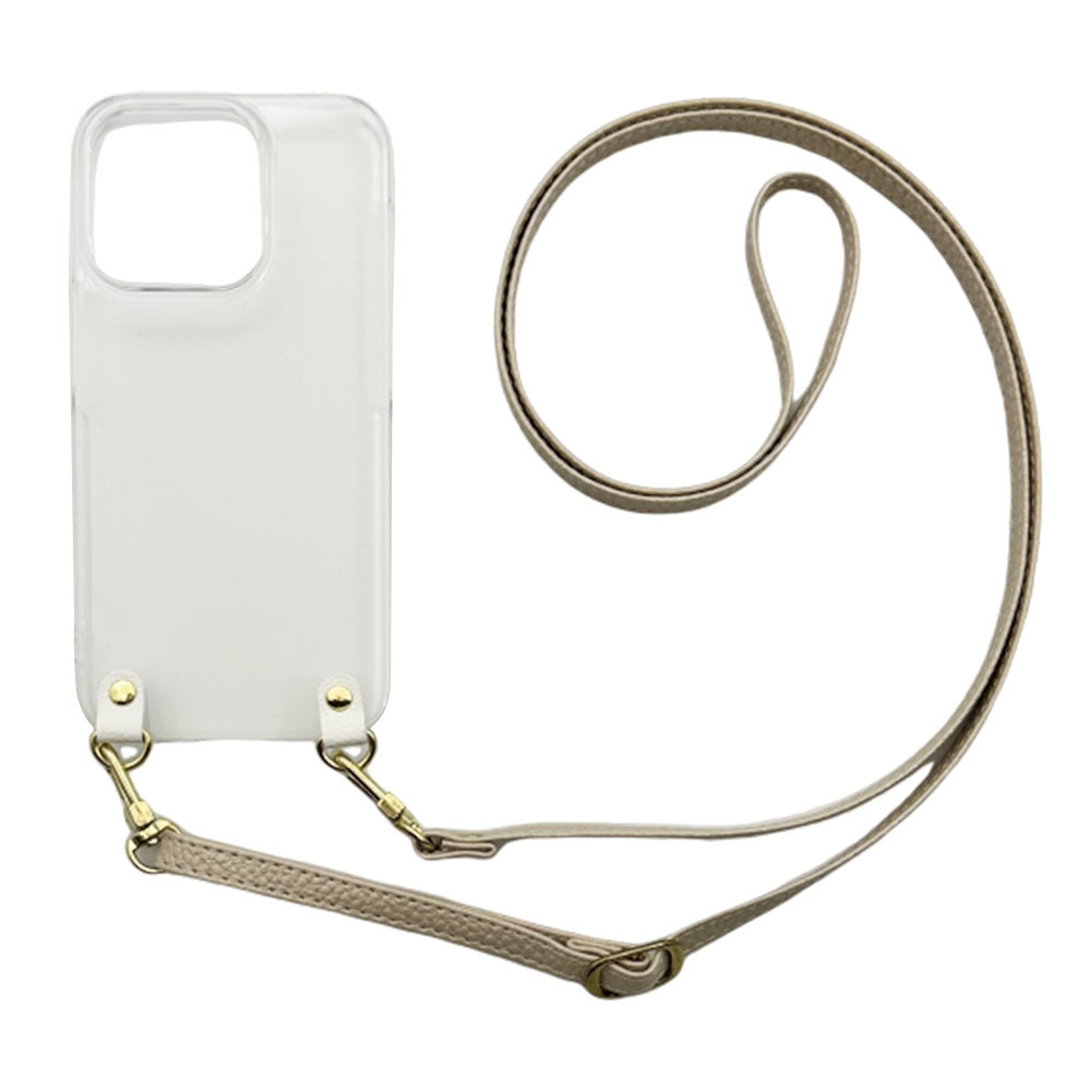 iPhone12 Pro Max(シャンパン)ストラップホルダー クリアケース ショルダー 肩掛け 首かけ 斜めがけ