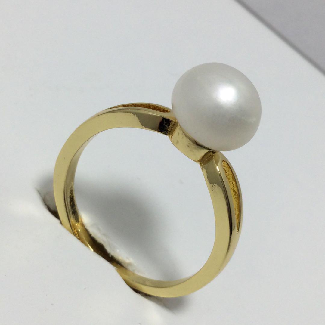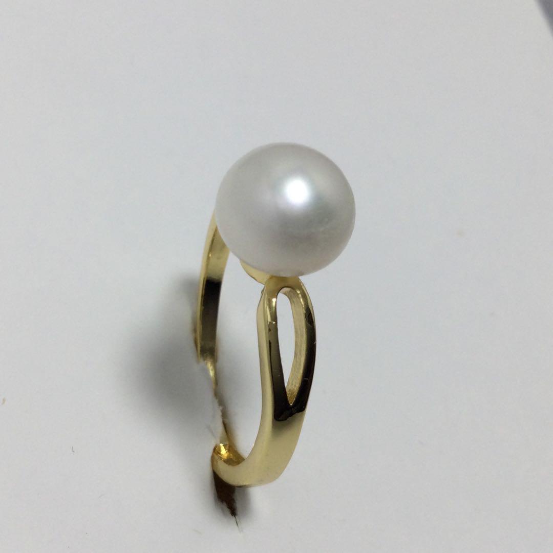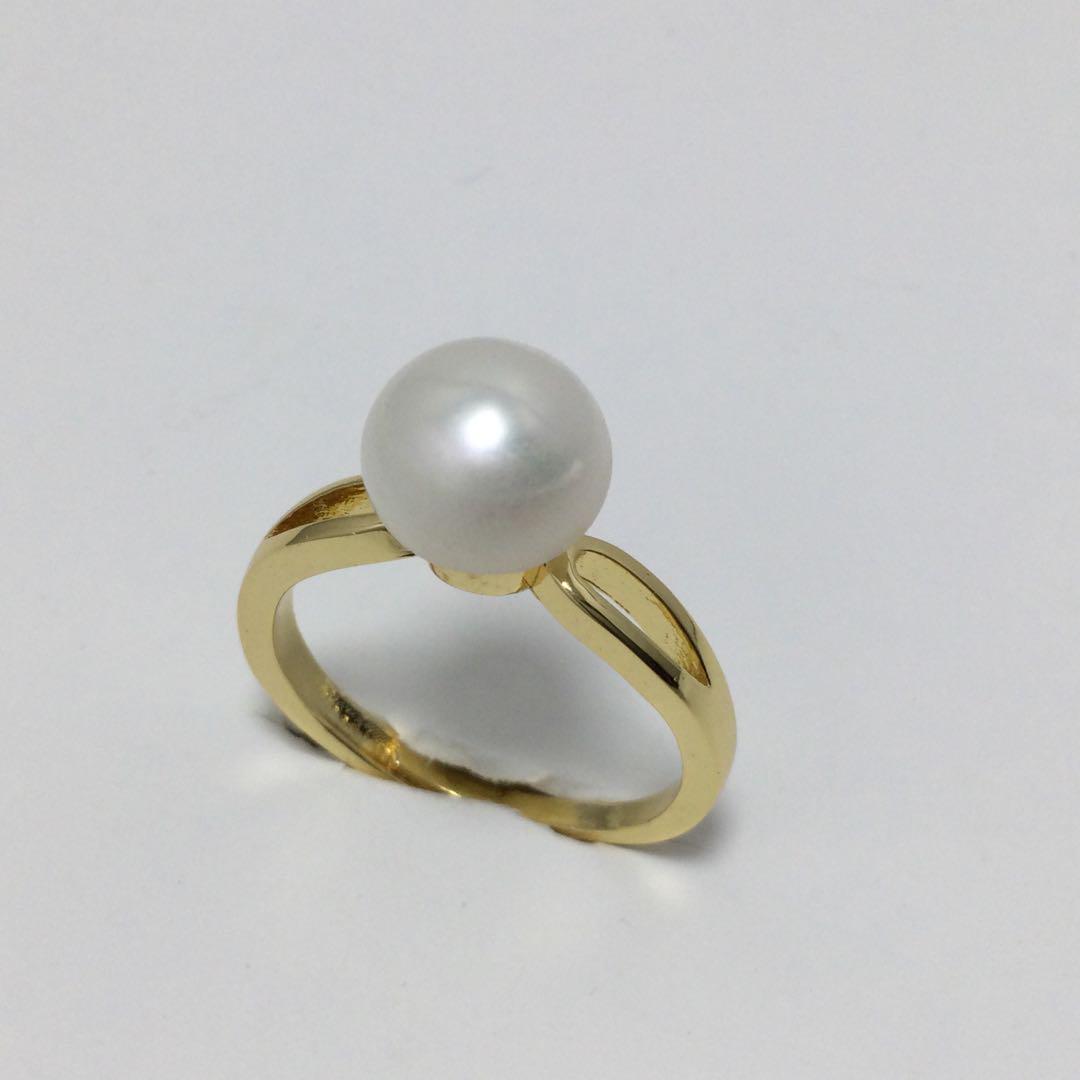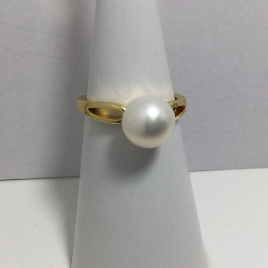 真珠リング指輪・本物淡水パール・高級感抜群・ゴールト色・人気柄天然色ホワイト【目玉品買い得】