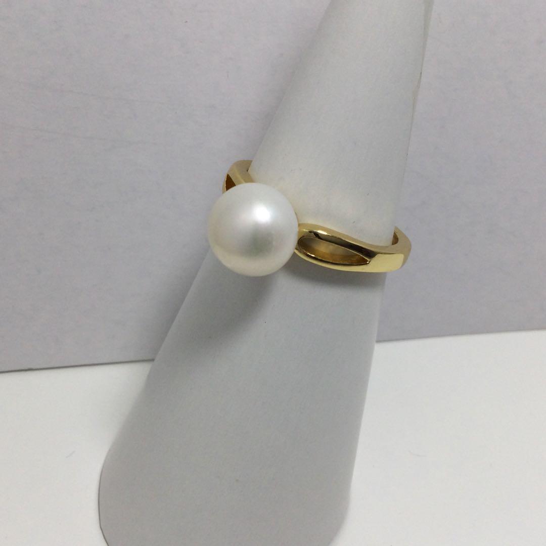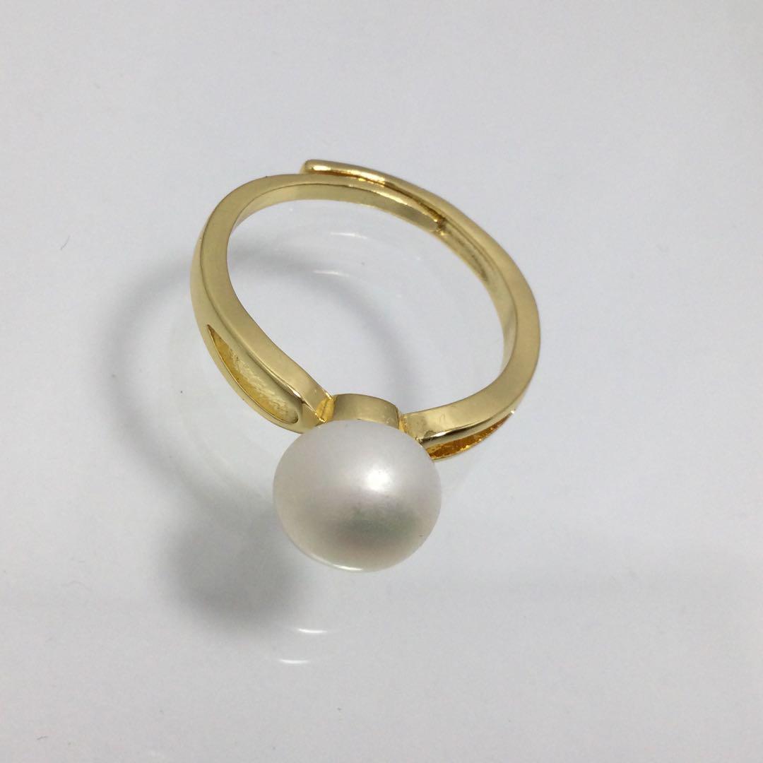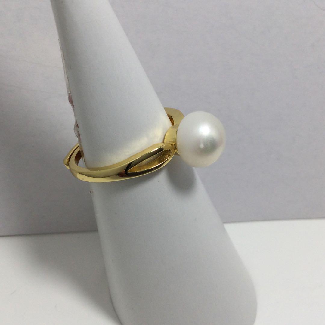 本真珠淡水パール&ゴールト色リング高級感抜群、指輪【芯立て&台座付き指輪】安定感抜群フリーサイズ調整自由、普段使い 大人カジュアルおしゃれ!