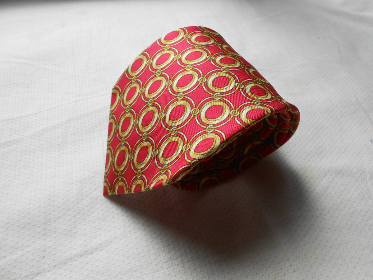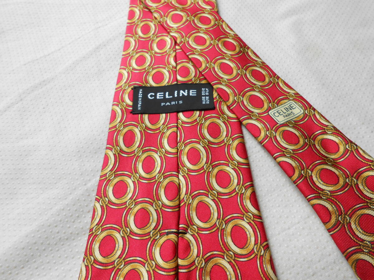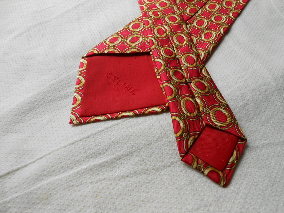 E19美品セリーヌのスペイン製総柄丸模様素敵な厚手ネクタイ赤